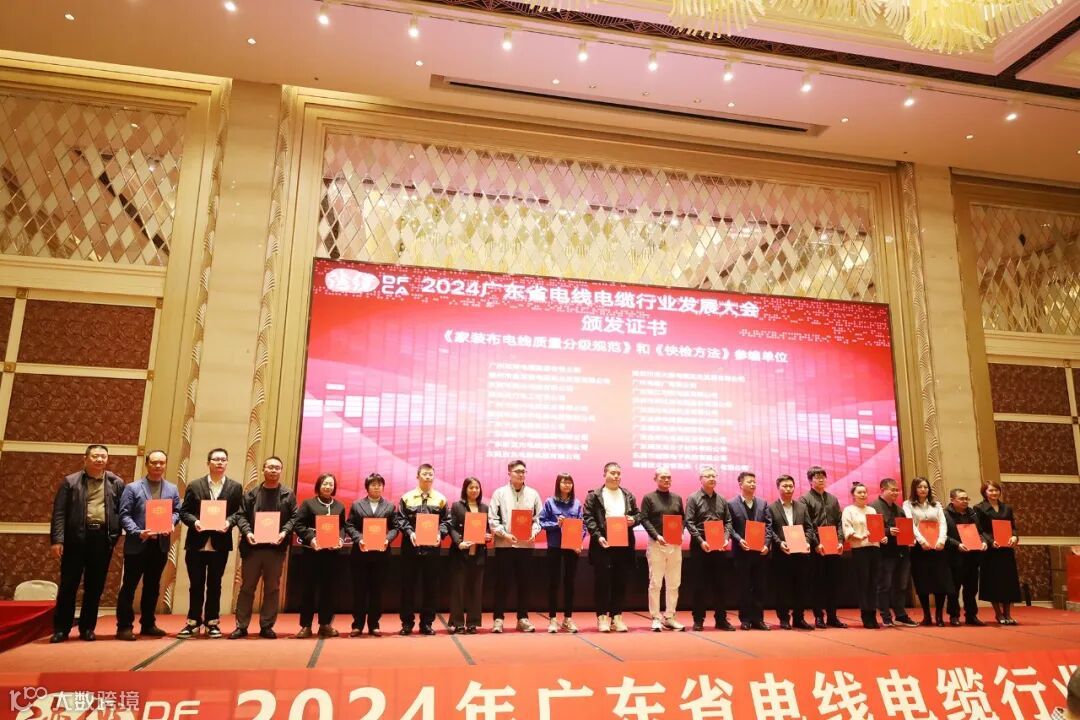 大会,还颁发了《额定电压450/750V及以下民用建筑用电线电缆(家装布电线)质量分级评价技术规范》、《额定电压450/750V及以下民用建筑用电线电缆快检筛查方法》和《电动汽车充电用液冷电缆》参编单位证书。