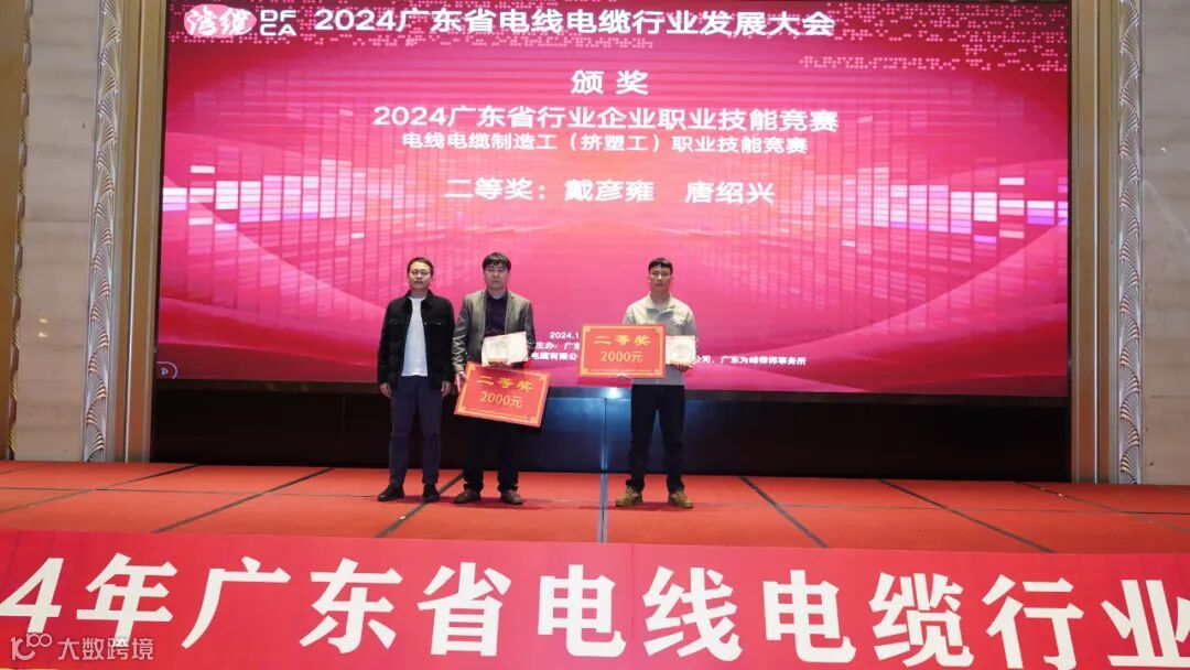 大会,颁发了2024年广东线缆行业企业职业技能 (电线电缆挤塑工)竞赛系列奖项,陈广信获得一等奖,戴彦雍、唐绍兴获得二等奖,李佳蔚、涂顺帮、何杰获得三等奖;广州市新兴电缆实业有限公司获得“广东省技能人才培训突出贡献奖”,李楷东获得“优秀裁判长”奖,周建、陈永全、刘铜、李楷纯、何劲松、李云欢、高杨、田明刚获得“优秀裁判”奖。