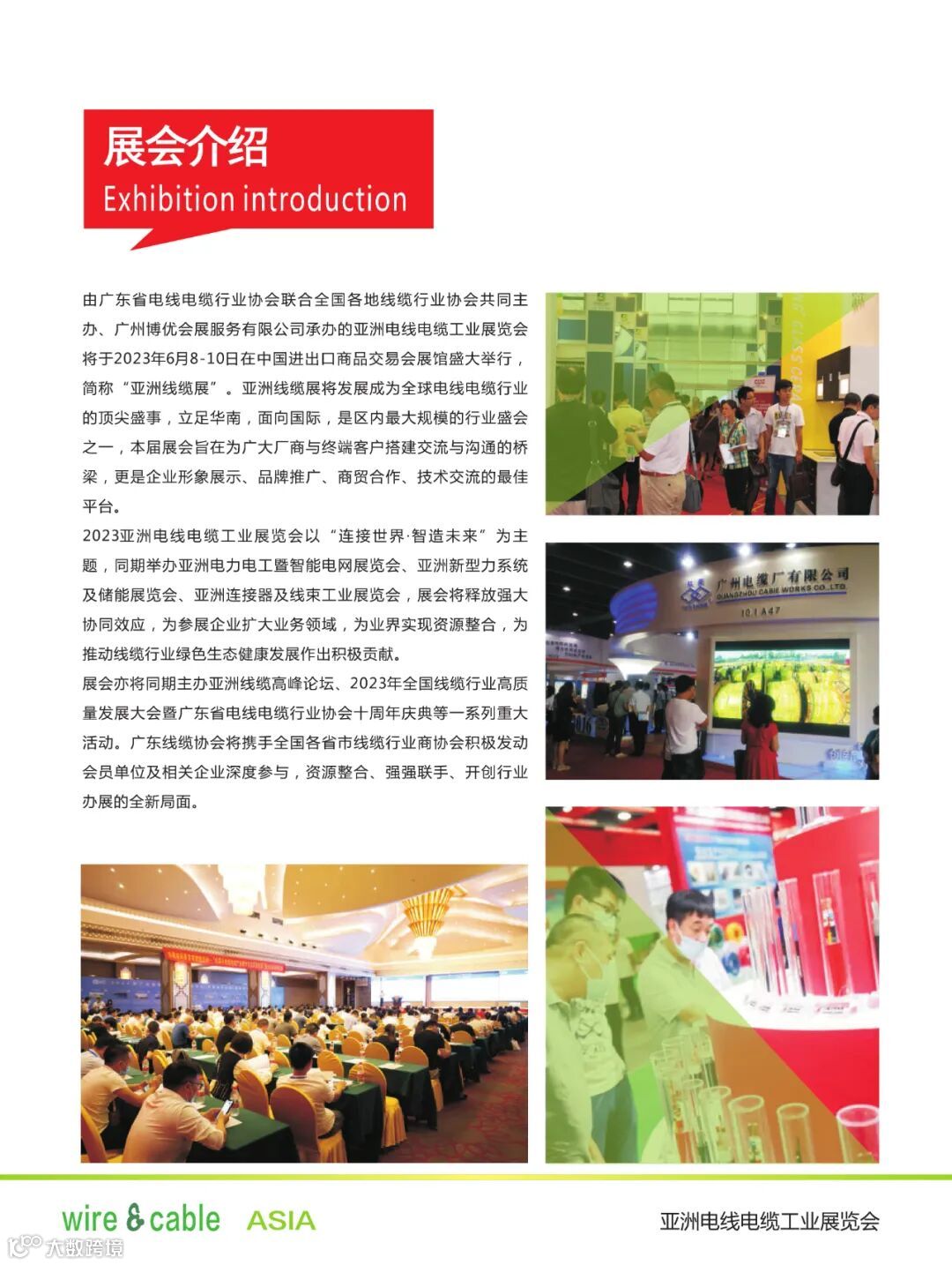 亚洲线缆展无论是在展会规模、展商知名度、还是行业的认知度和观众数量方面都将是华南地区空前的专业展会,这不仅是大家聚首、共话友谊的良机,也将为业界搭建更好的展示交流平台,以促进中国线缆产业的健康持续发展。