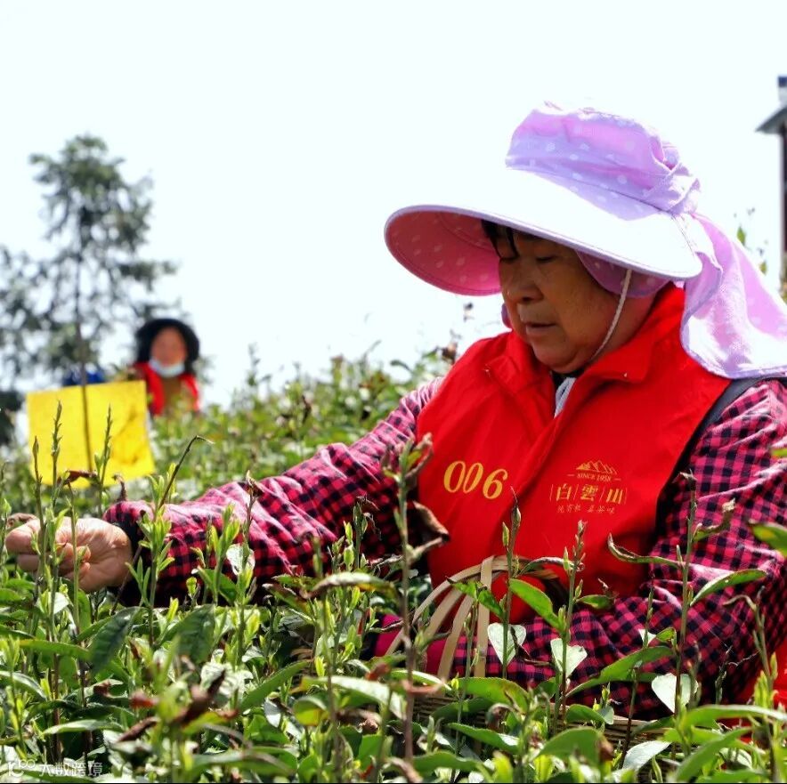 3月28日,白云山国有林场茶园正式开园。趁着春光明媚,上百名采茶工人分散在千亩有机茶园中,抢采春天的一梢新绿。