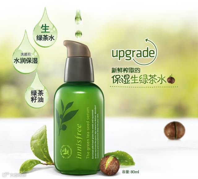 生绿茶水有效补水,绿茶籽油锁住肌肤水分