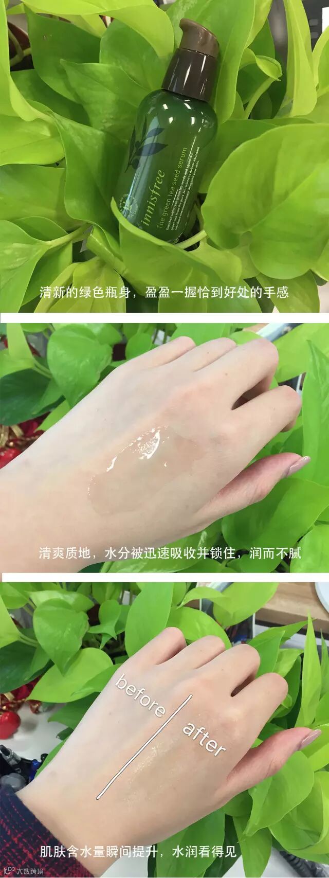 首先涂抹innisfree绿茶籽精萃水分菁露