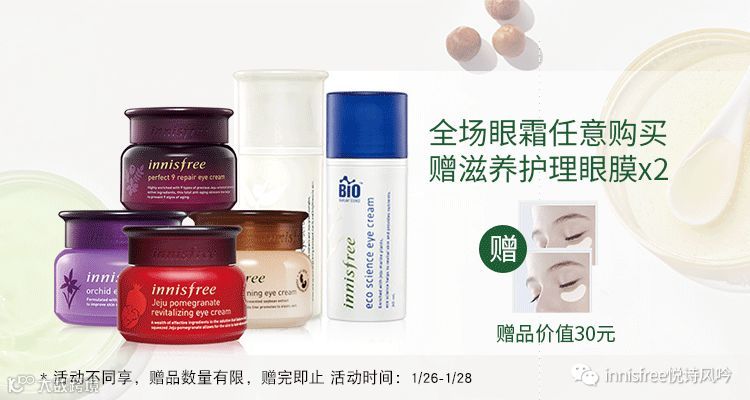 全场眼霜任意购买 赠滋养护理眼膜2片