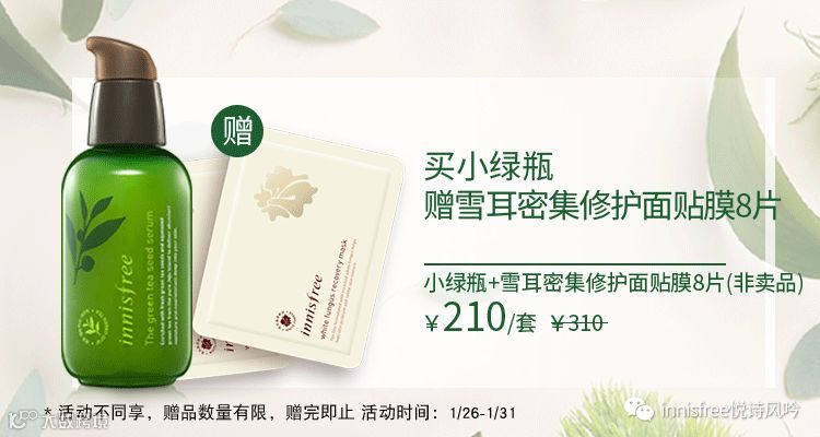 买小绿瓶 赠雪耳密集修护面贴膜8片