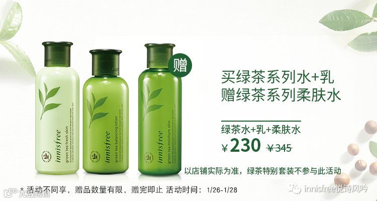 买绿茶系列水+乳 赠绿茶系列柔肤水