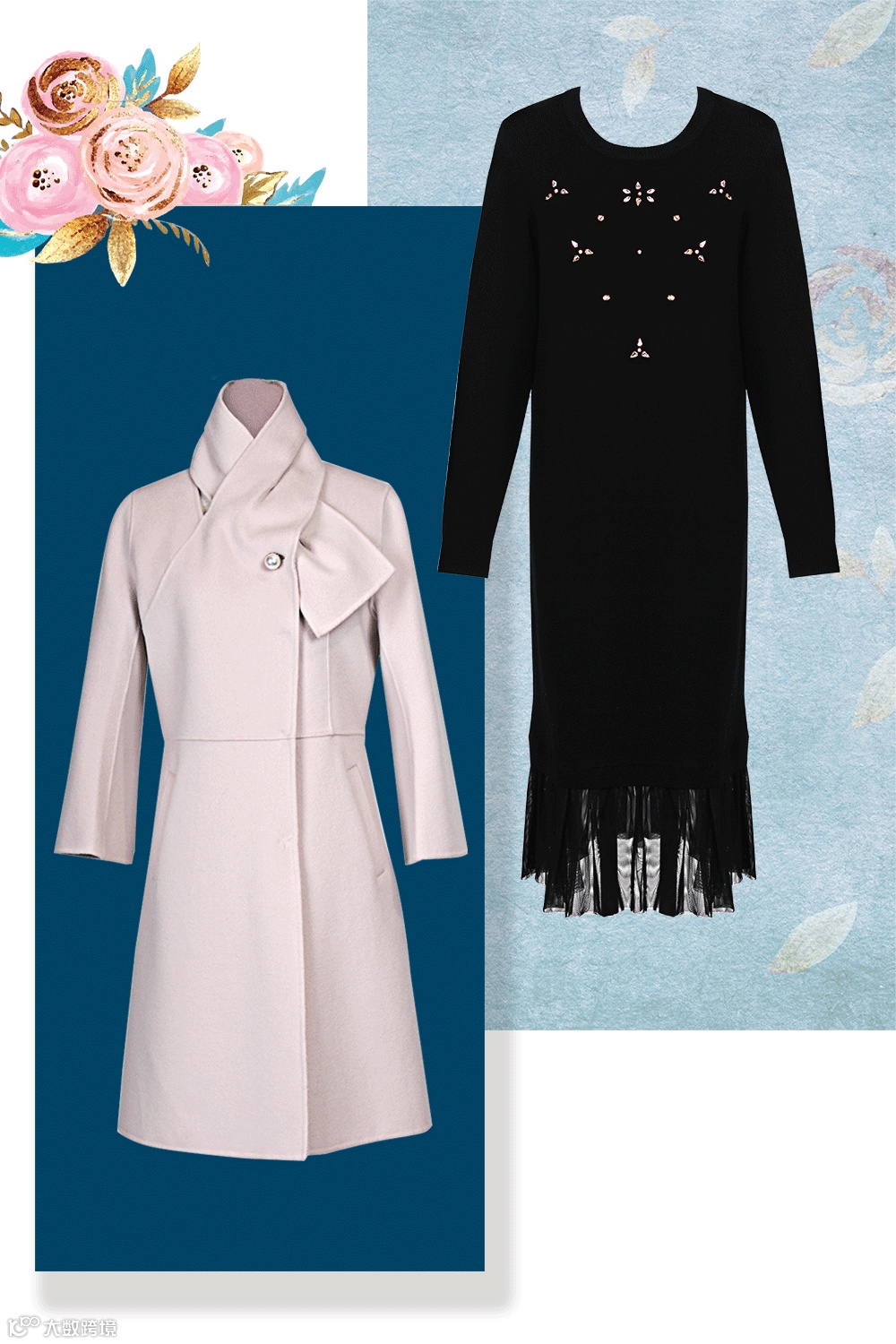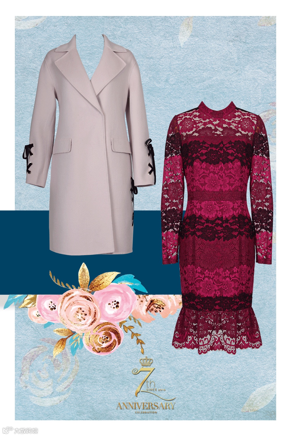 欧洲进口渐变蕾丝面料,渐变丝线织造,别致新颖,宫廷复古优雅范。进口高支澳毛双面呢,手工缝制手感软糯,极其柔顺又垂坠挺括,绑带设计,知性优雅都市丽人范。