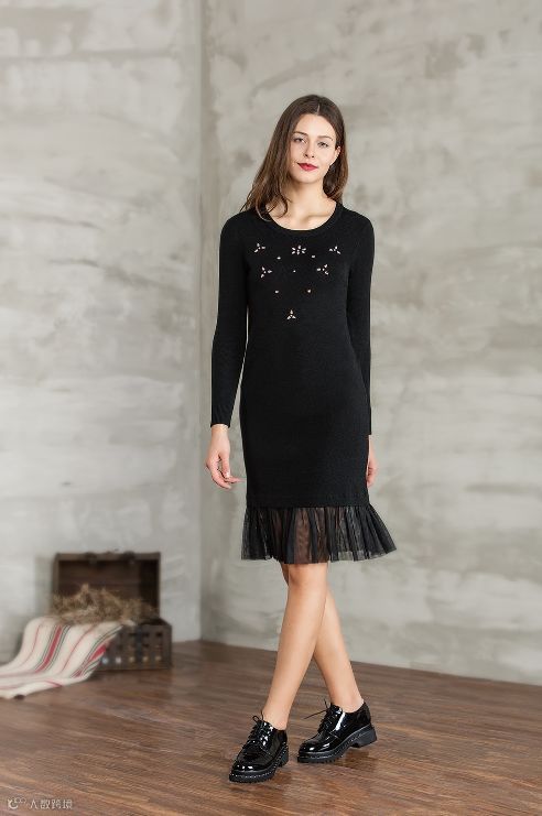 圆领长袖毛衫裙37427902
