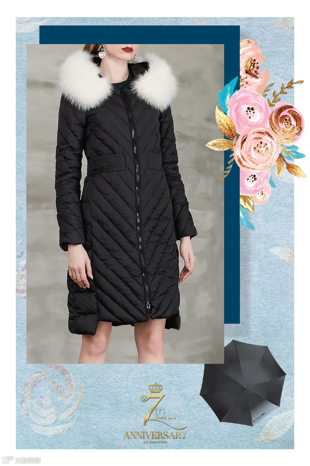 羽绒服≠臃肿,合体的版型,极致收腰拼接设计,让人在视觉上产生错觉,保暖显身段。豪气的超大毛领,洁白温暖,增添一丝小女人的可爱魅力。