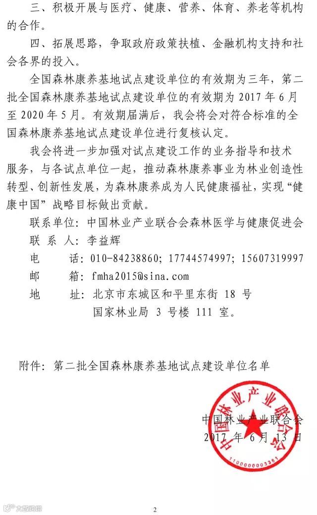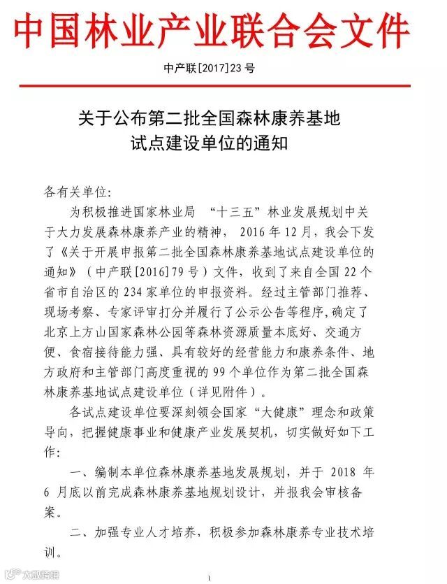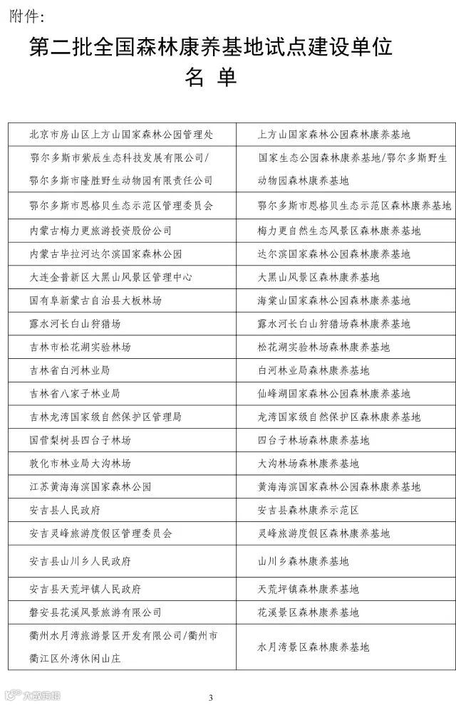 关于公布第二批全国森林康养基地试点建设单位的通知: