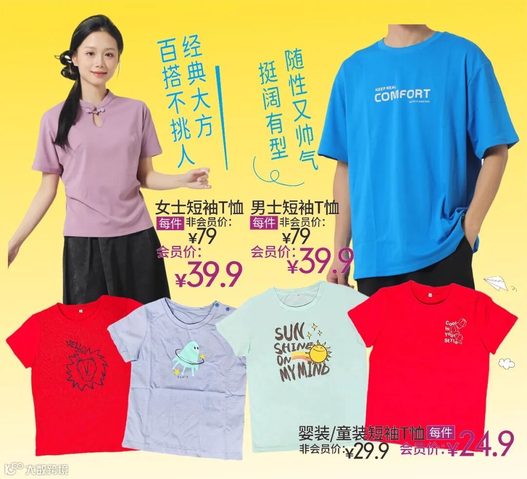 永旺EB休闲服饰系列!经典百搭短袖T恤会员专享39.9元超值价,通勤、运动、日常休闲场景无缝切换,多色可选速抢(以卖场实物为准)~