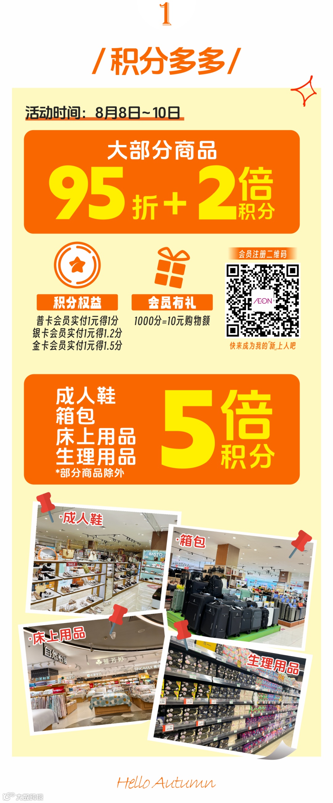 立秋福利加码!8月8日-10日连续3天超级会员日,欢迎来永旺用券立省、积分翻倍、爆款直降,让这个初秋更‘惠’生活!
