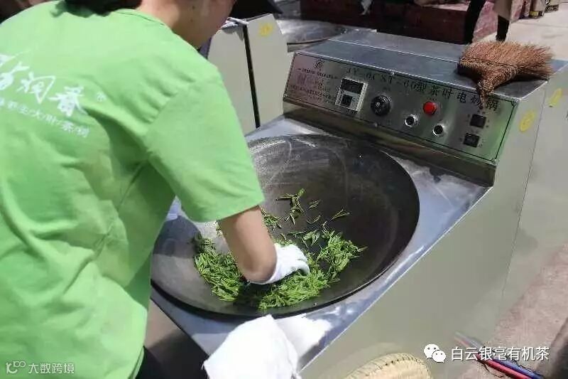 ▲经过摊青、杀青、理条、整形、脱毫、提香等一系列传统工艺加工,香浓味纯的手工扁形绿茶便新鲜出锅。