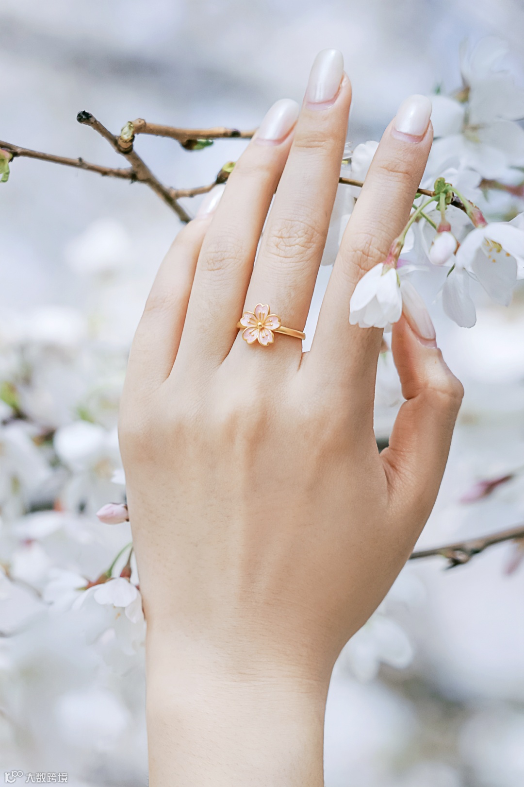 淡粉色珐琅定格樱花姿彩
