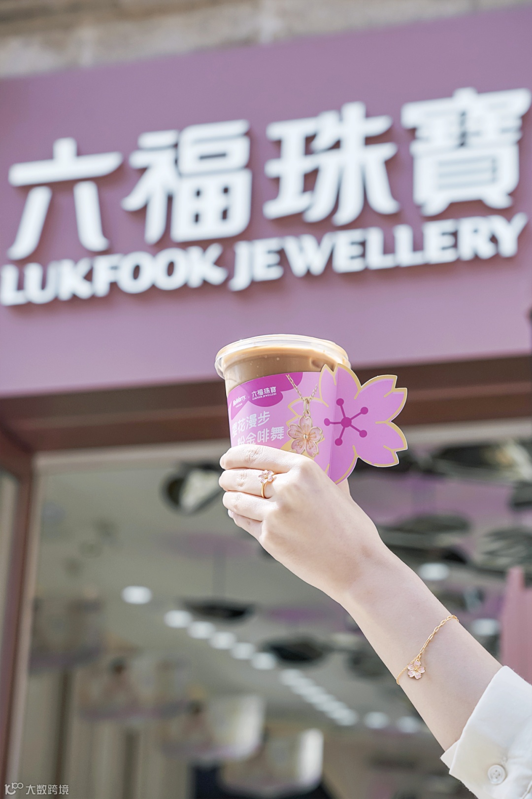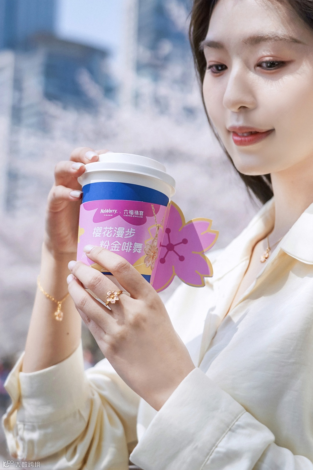 联名咖啡配有专属樱花造型杯套