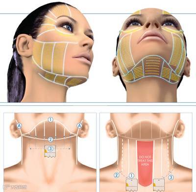 超声刀治疗深度为1.5~4.5 mm,除了作用到纤维中隔之外,还可以作用到更深部的SMAS筋膜层,SMAS筋膜层正是手术拉皮时重要拉提的关键。
