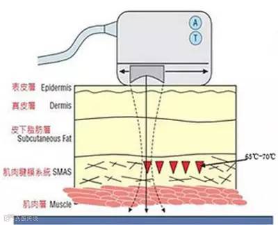 超声刀利用聚焦式超音波技术,以非手术治疗到达手术拉皮的SMAS层,利用超音波对皮肤加热,让胶原蛋白增生,达到瞬时紧肤和提拉的惊人效果。