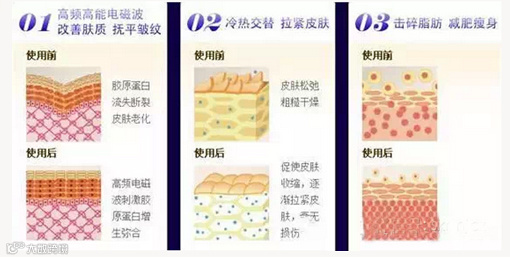 高能高频E波传导技术:一次震动高达1000万次,能瞬间将皮下纤维温度升至75℃,促使胶原重生,紧致皮肤,消除皱纹,6个月后持续紧致,效果维持数年。