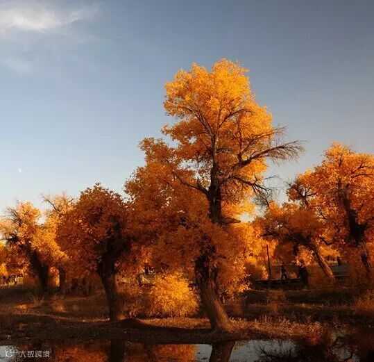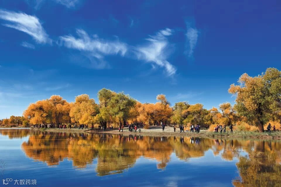 额济纳是世界上仅存的三大胡杨林区之一,沿沙漠分布有38万亩胡杨林。8月刚过,便迎来了额济纳最好的日子,胡杨的叶子变得金黄火红,宛如沙漠中的一片熊熊燃烧的海,任何言语都在这金黄中显得苍白无力。