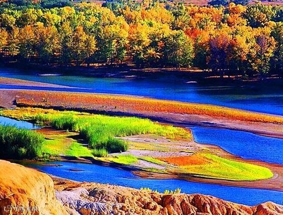 阿尔山其实并不是一座山,这里草原和林海相接,雪山和温泉共存。每年九月初,一场秋雨过后,那本来蓬勃翠绿的原野霎时就斑驳陆离起来。 白桦林摇着灿烂的黄、落叶松傲然伸展着绿、野果凝着醉人的红……一派迷人风光。
