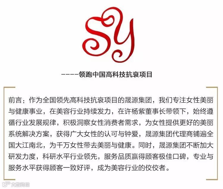 成立于2013年,是一家专业从事高端美容美体仪器进口、研发、生产、销售、服务于一体的生物科技公司。公司立足于高科技美容领域,主营高科技抗衰、健康管理、美容美体等项目,现已在重庆设立了分公司。健康与美丽,是幸福的本源。我们是一个追求美、发现美、创造美的企业,拥有一群爱美、爱健康、爱科技的精英团队,秉承“和平、友好、进步”的宗旨,致力于美和健康的事业!