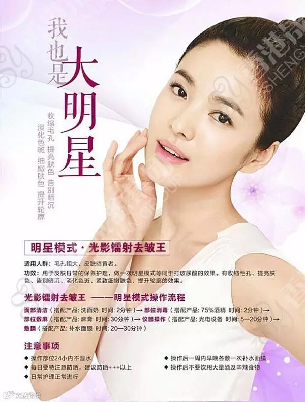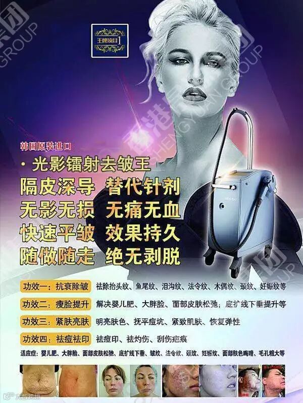 适用人群:有浅表性细纹、痘印、痘坑、皮肤松弛、毛孔粗大、肤色暗黄者