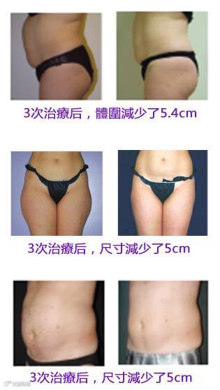 治疗后可立即减少体围和脂肪厚度尺寸,被破坏后的脂肪细胞,会在2到4周内,经由身体的自然代谢排出体外。体围和脂肪厚度的减少,您可以在最后一次治疗后约二十八天,看出极佳治疗成果。