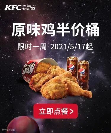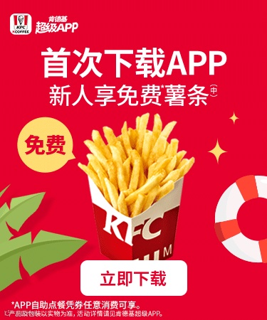 供应区域:仅限肯德基宅急送送餐范围和服务时间,部分送餐区域不参加活动,不同送餐区域的服务时间有差异,详情以预约页面显示为准。