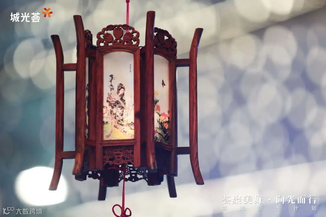 广式红木宫灯灯光闪闪,点亮中秋的夜