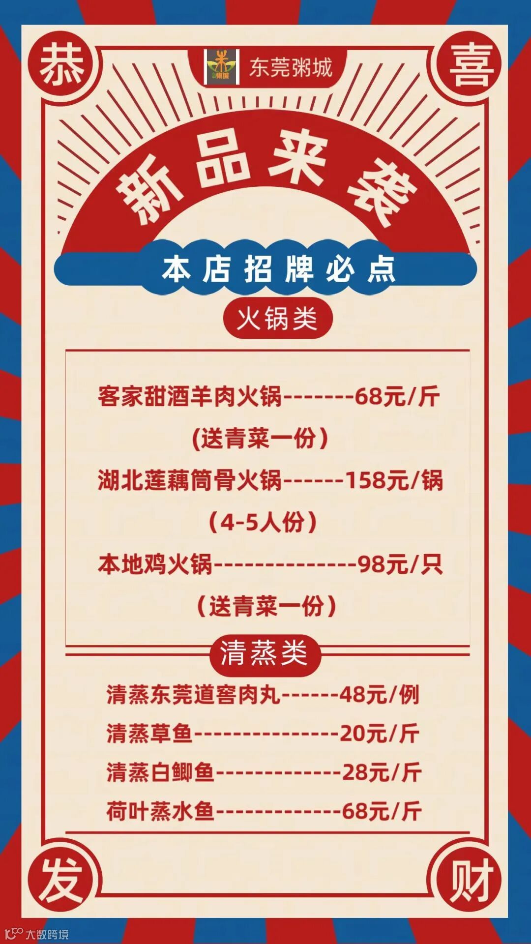 砂锅粥、客家甜酒羊肉火锅、清蒸