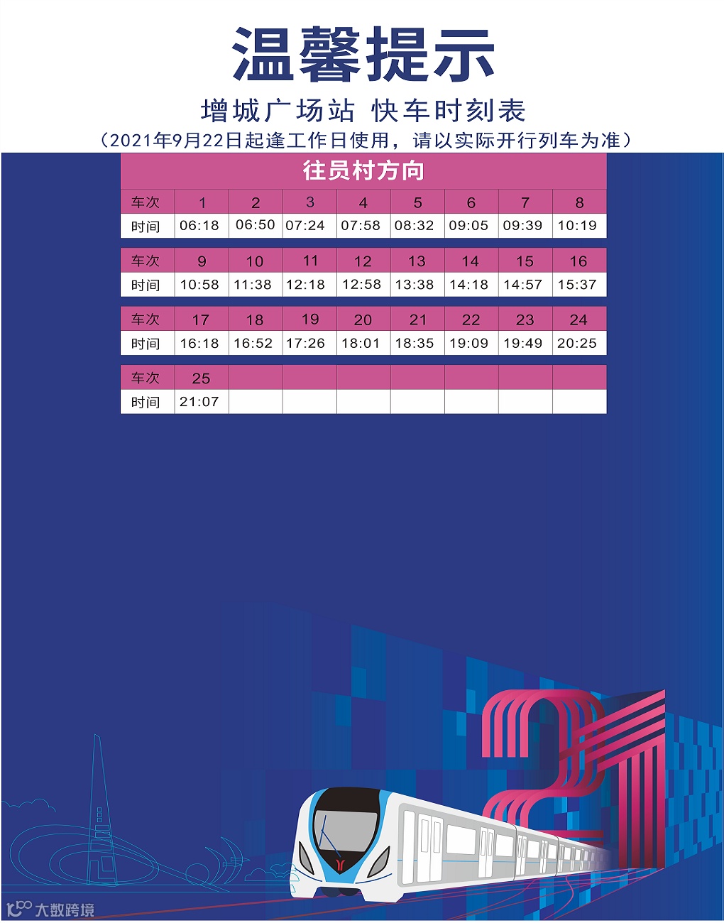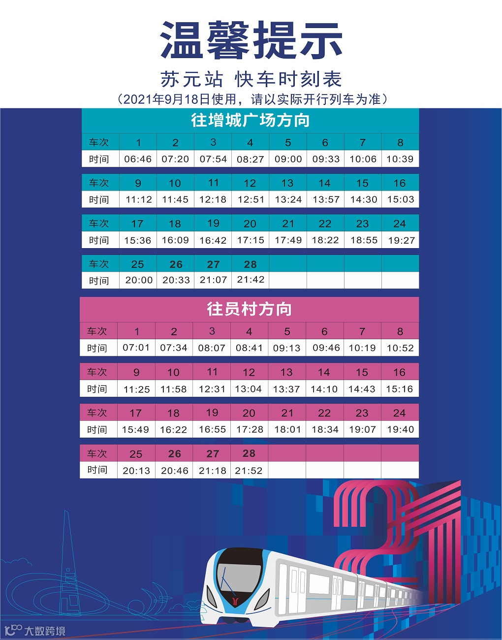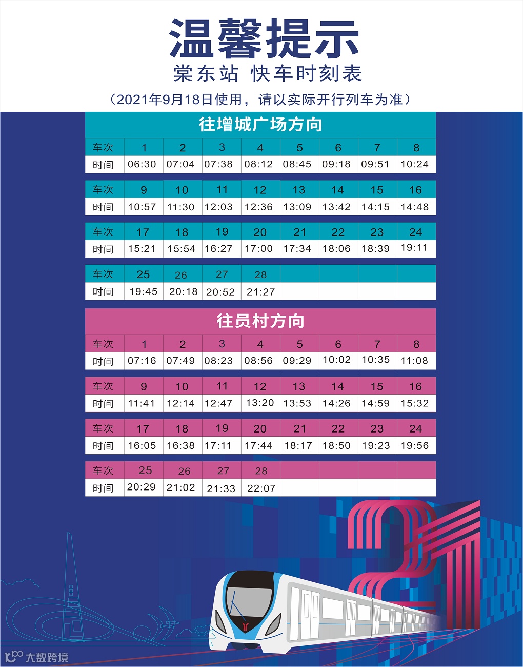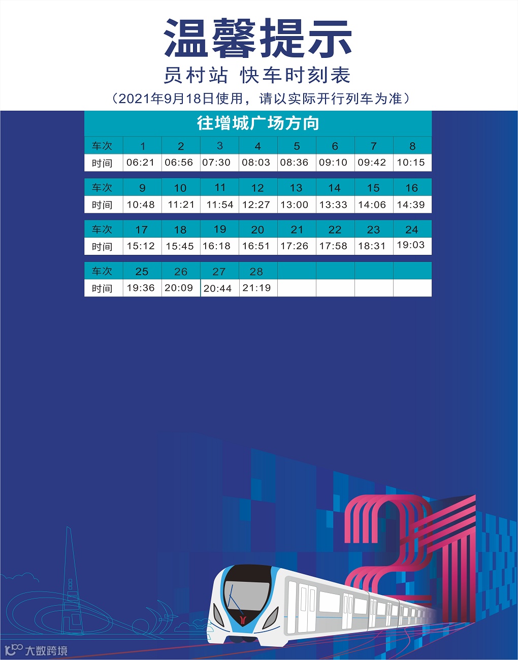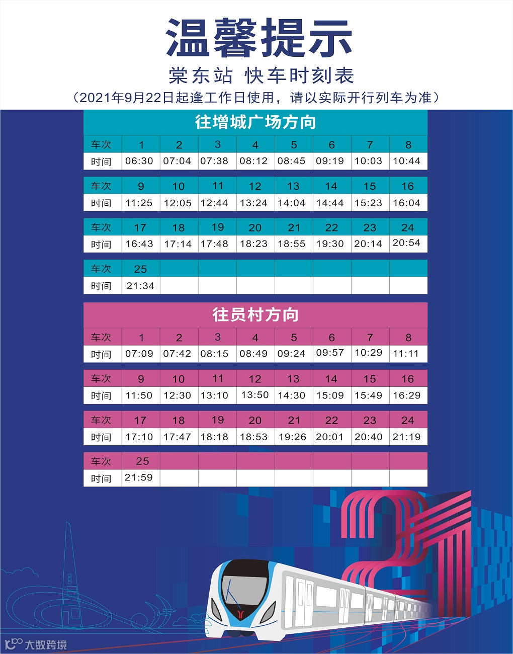 21号线快车时刻表分为9月18日、9月19至20日、9月21日、9月22日起逢工作日使用、9月25日起逢周六日使用,共5个不同的版本。