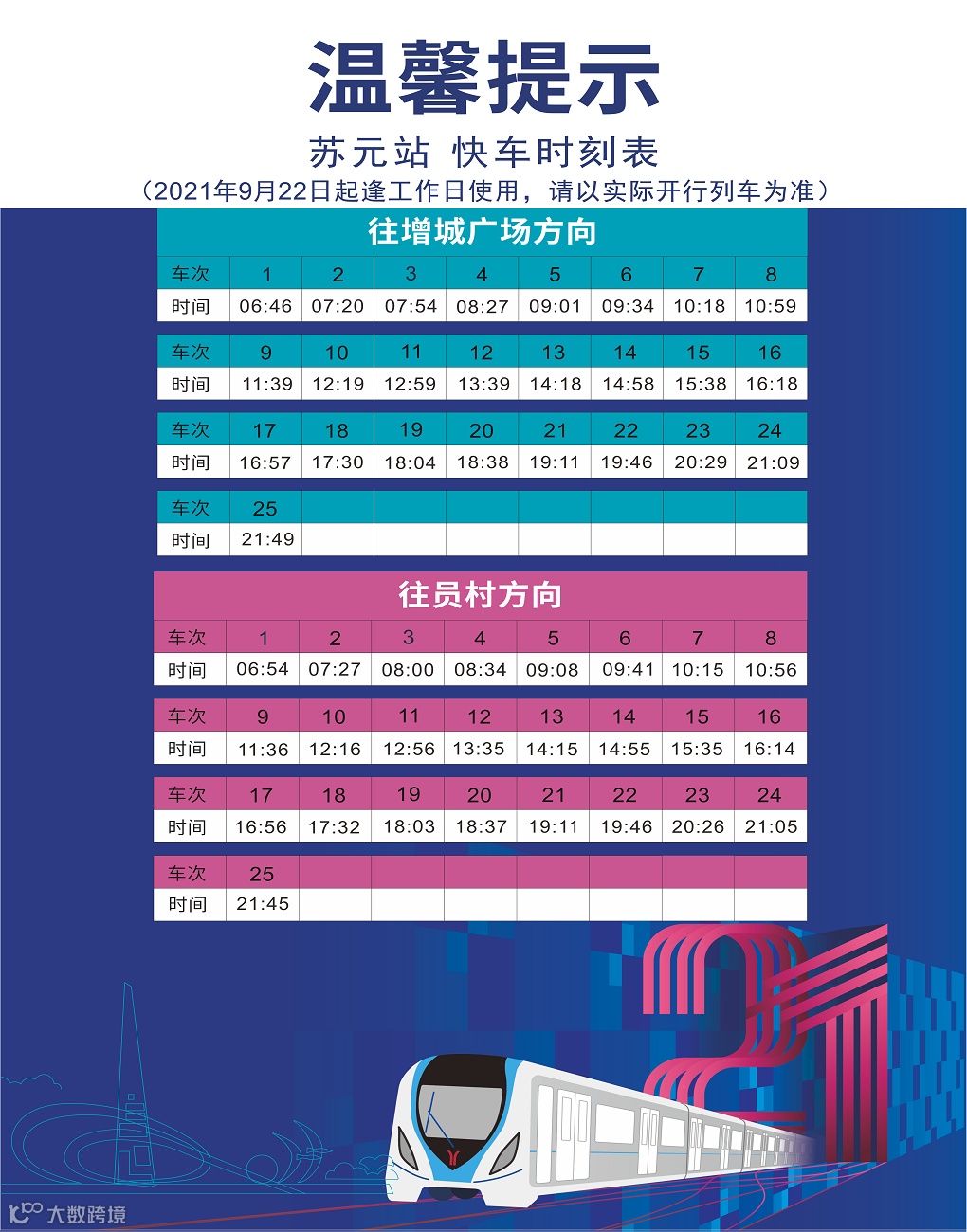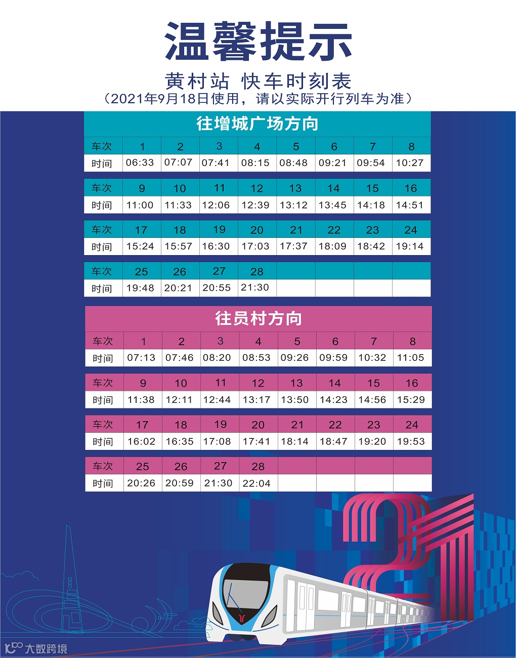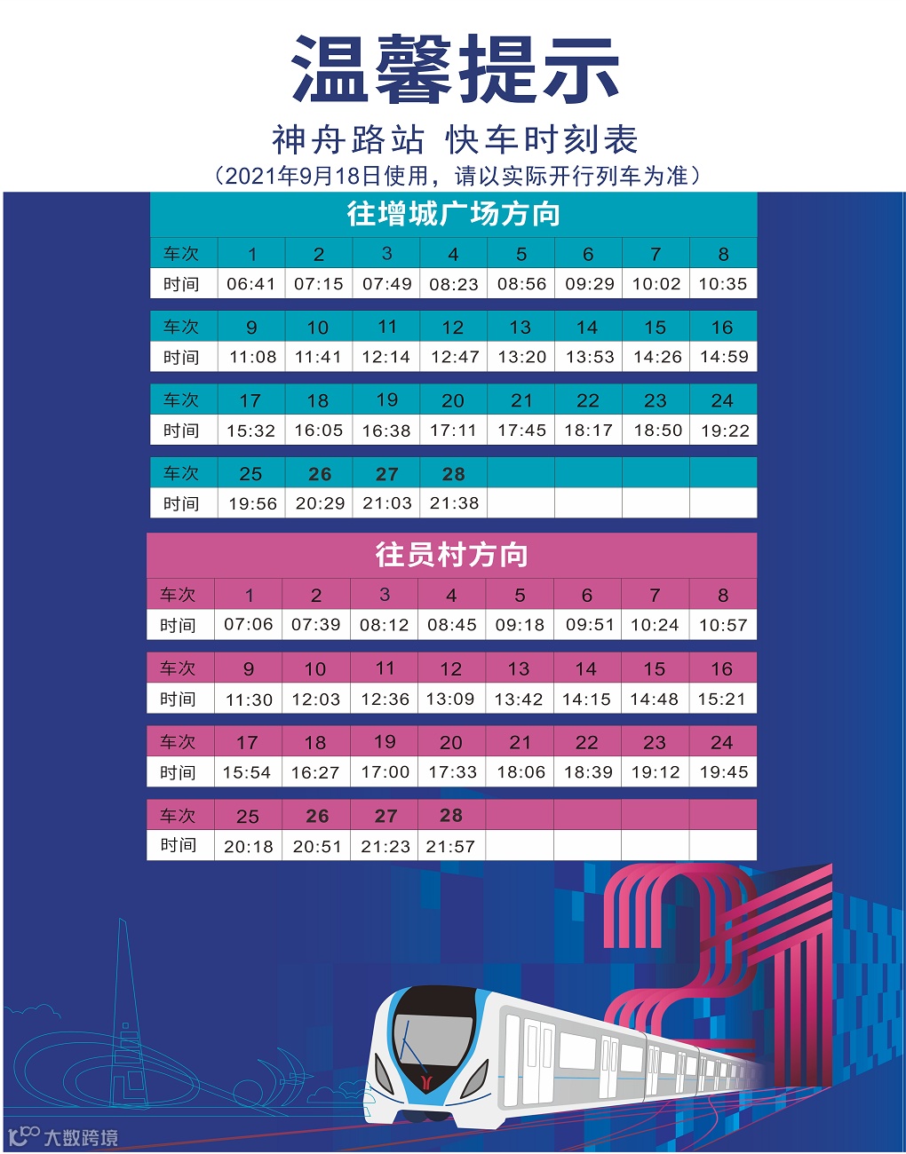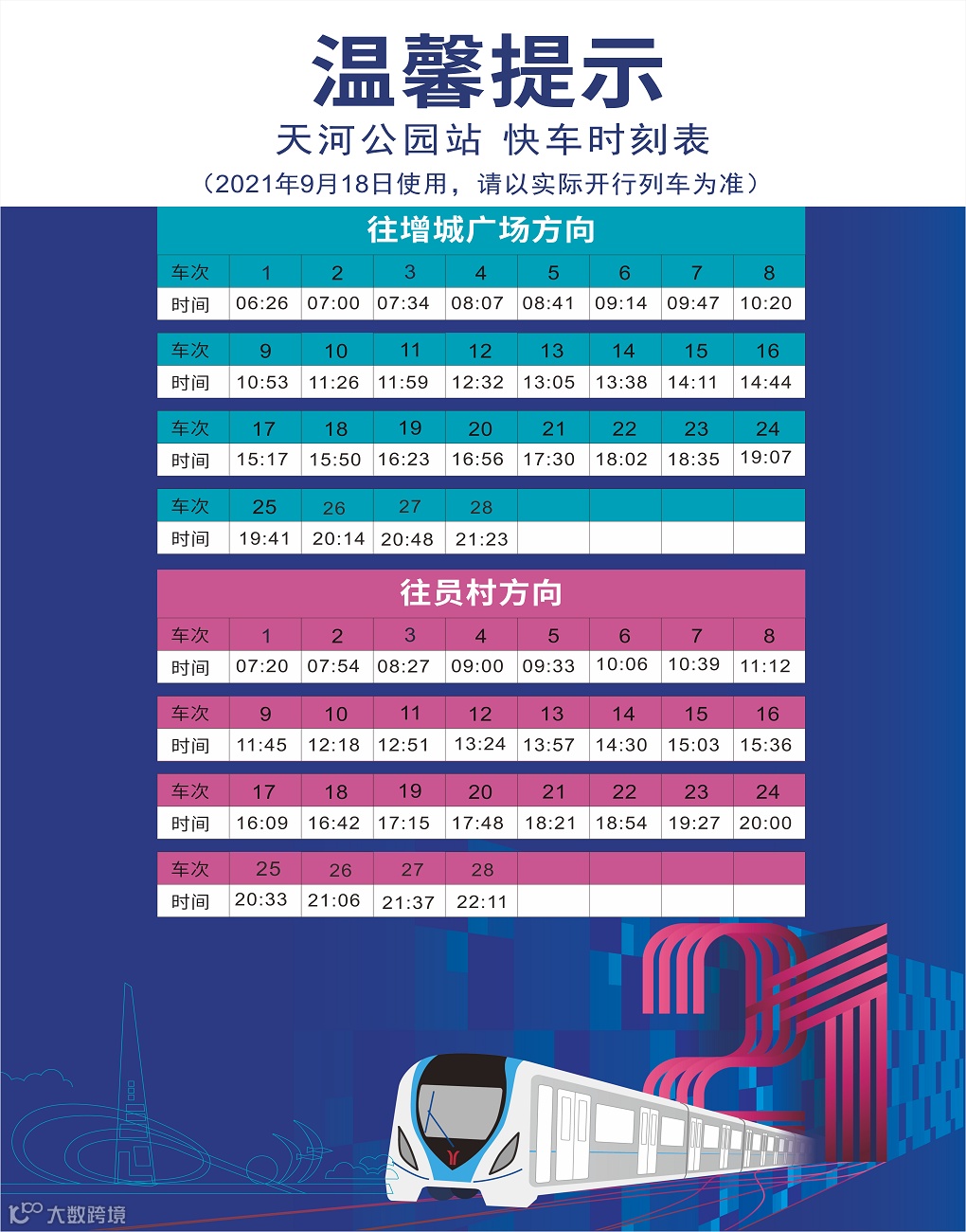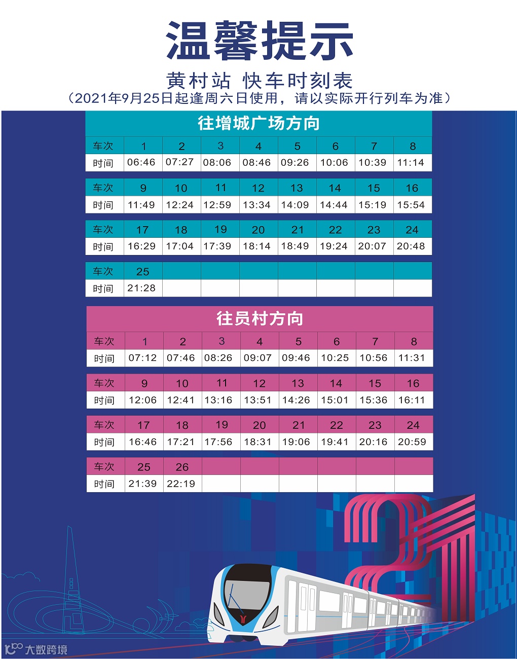 21号线快车时刻表分为9月18日、9月19至20日、9月21日、9月22日起逢工作日使用、9月25日起逢周六日使用,共5个不同的版本。