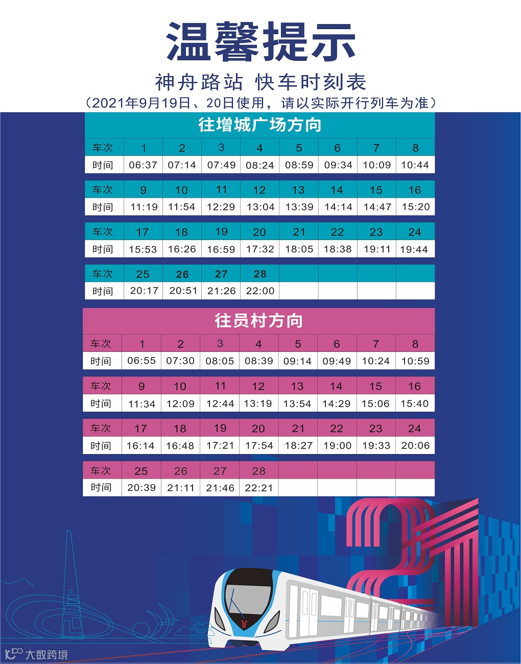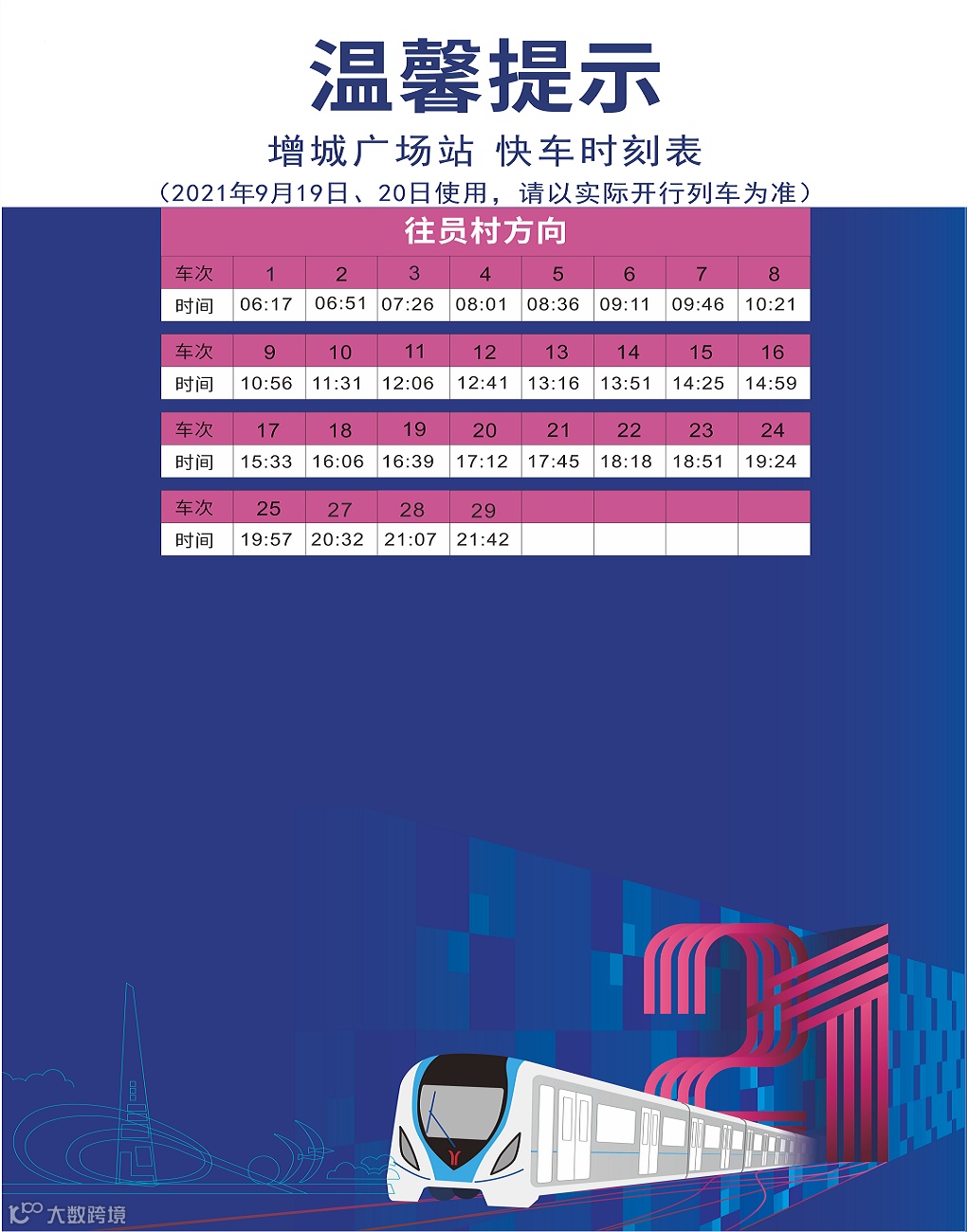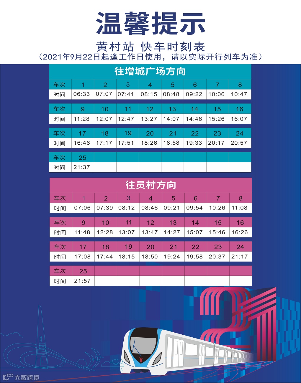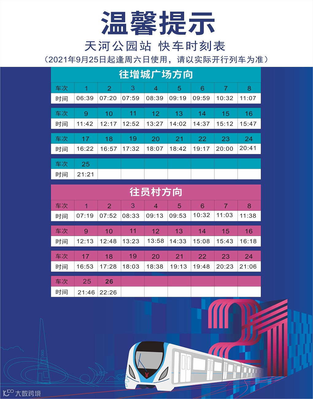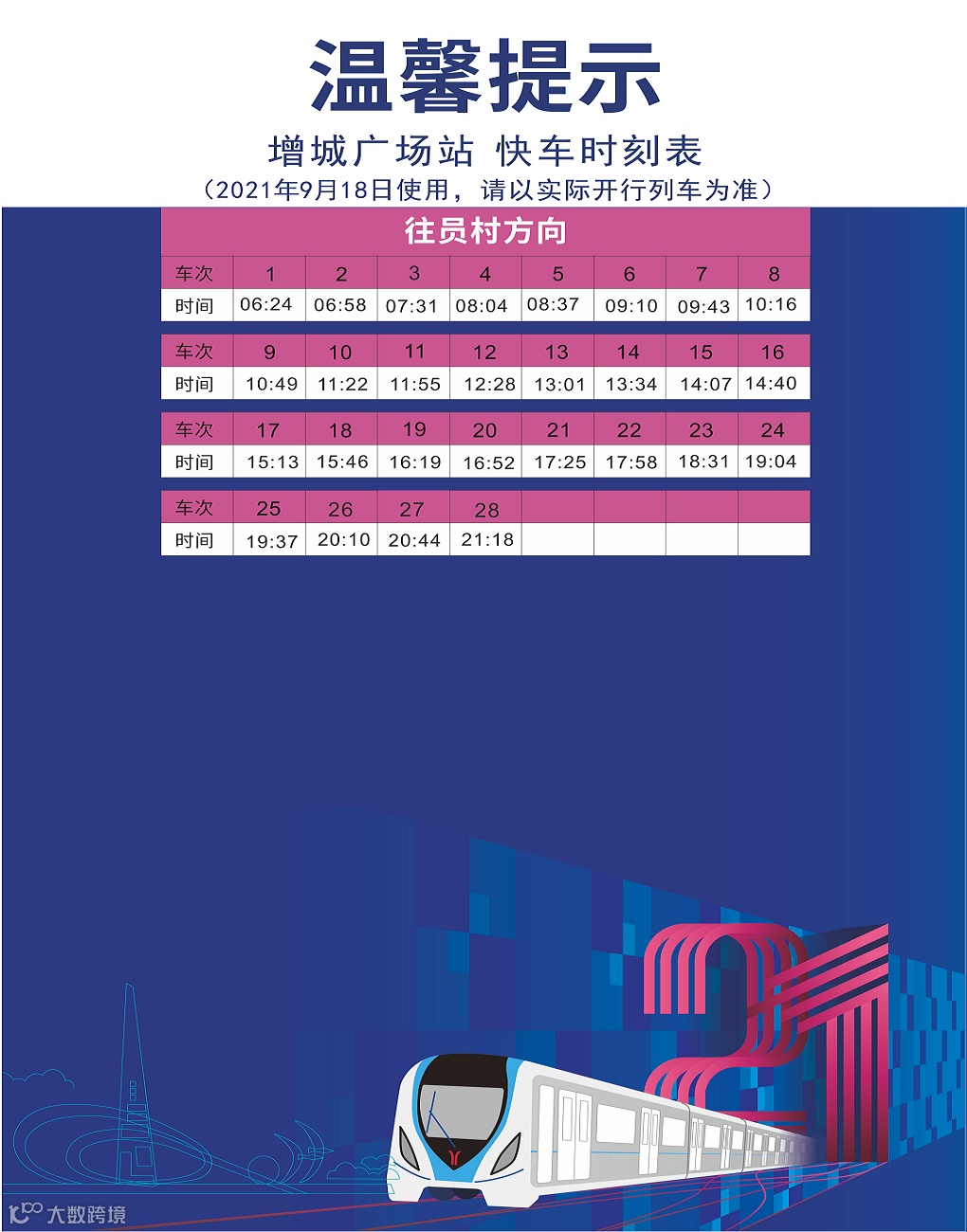21号线快车时刻表分为9月18日、9月19至20日、9月21日、9月22日起逢工作日使用、9月25日起逢周六日使用,共5个不同的版本。