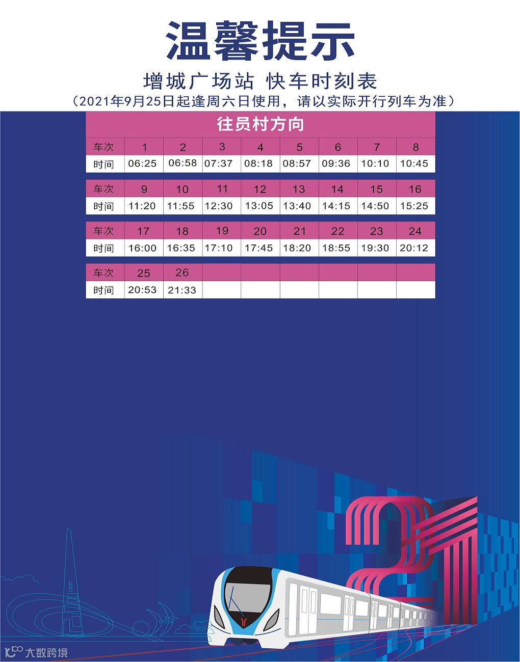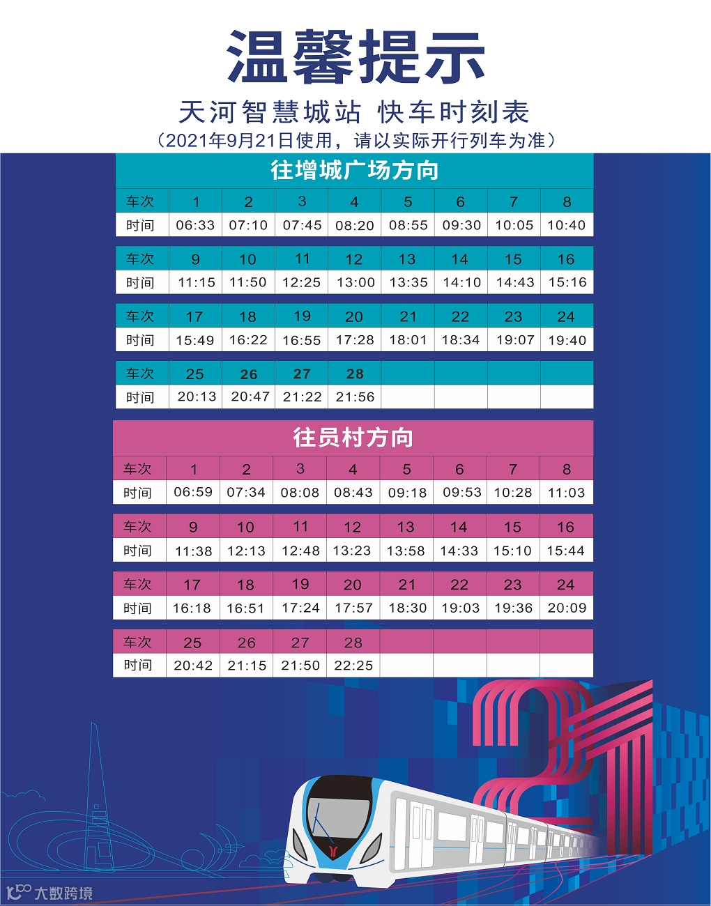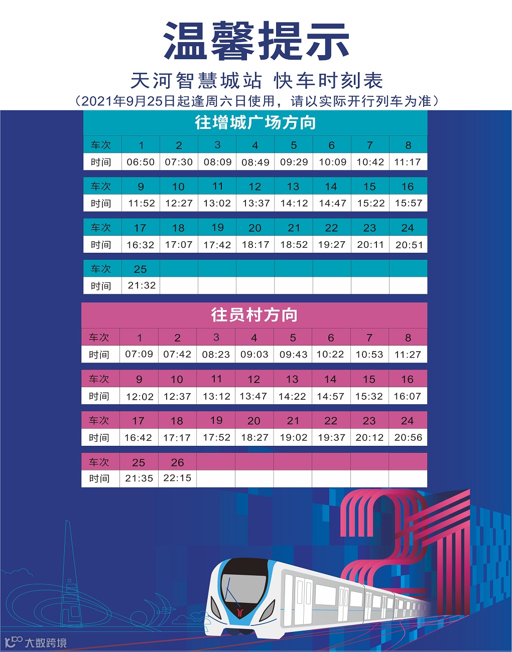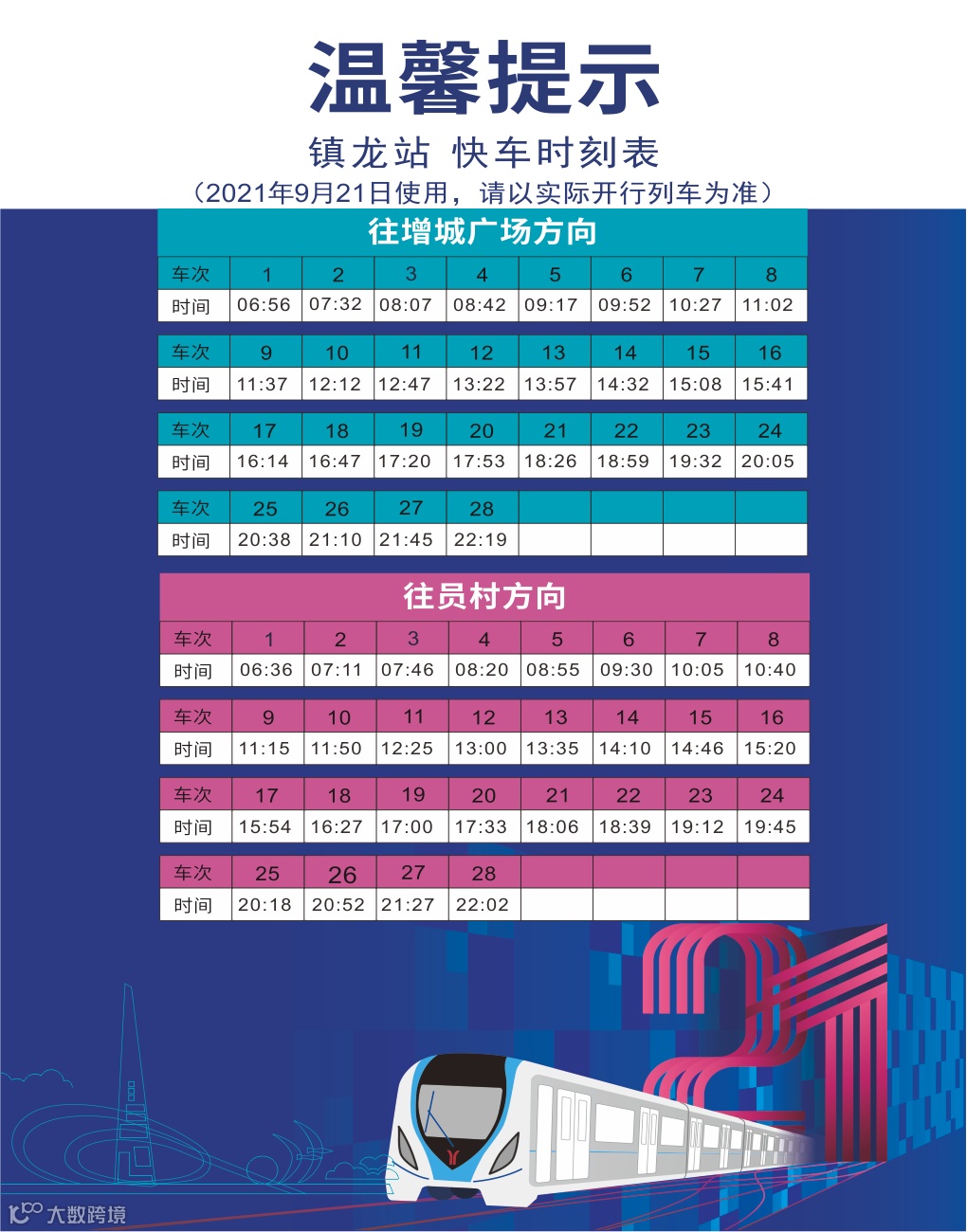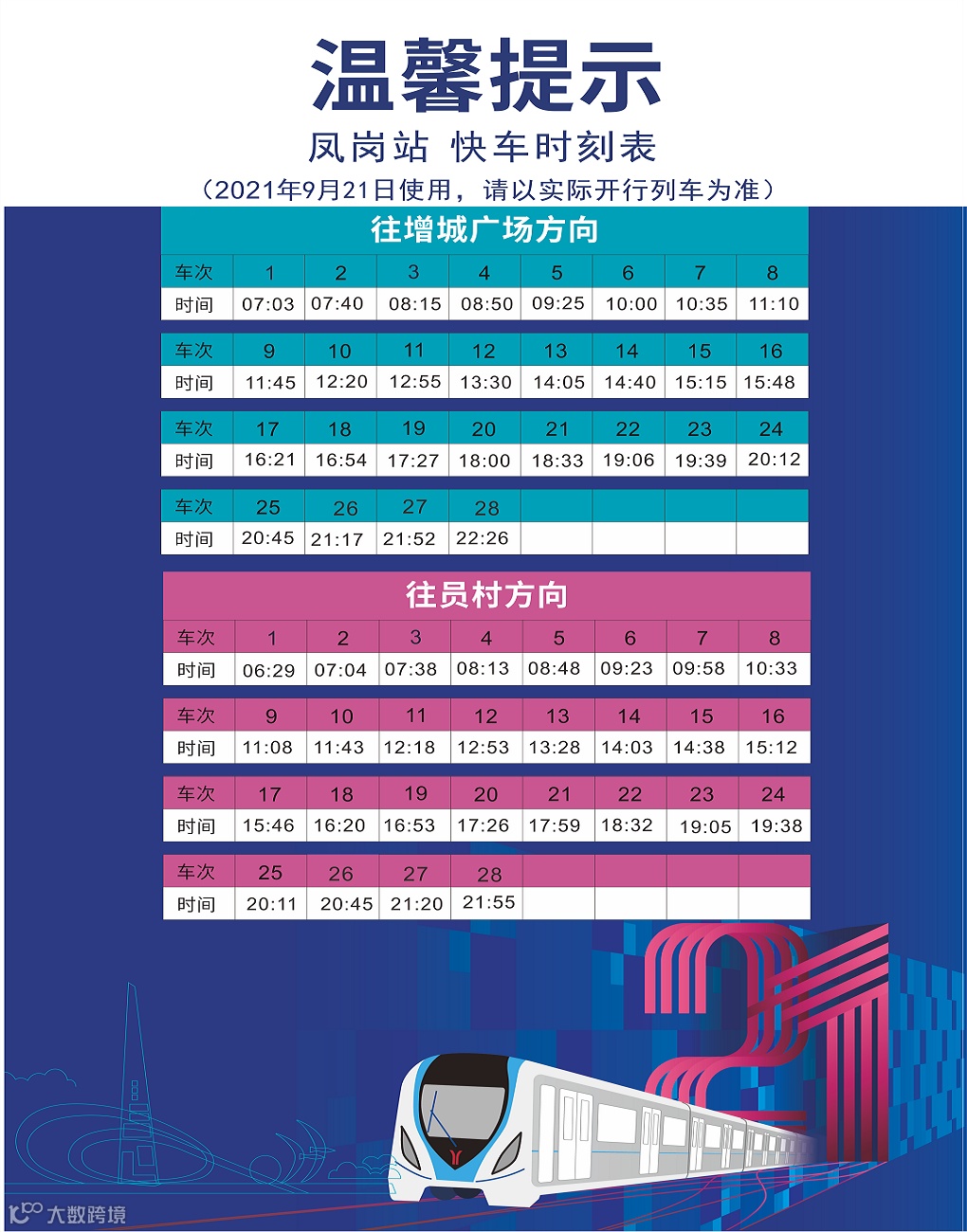 21号线快车时刻表分为9月18日、9月19至20日、9月21日、9月22日起逢工作日使用、9月25日起逢周六日使用,共5个不同的版本。