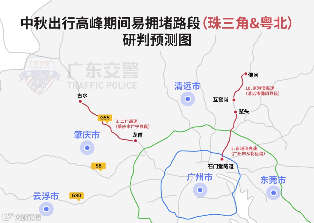 中秋小长假出行,预计广州、深圳等中心城市的出城车流增多。