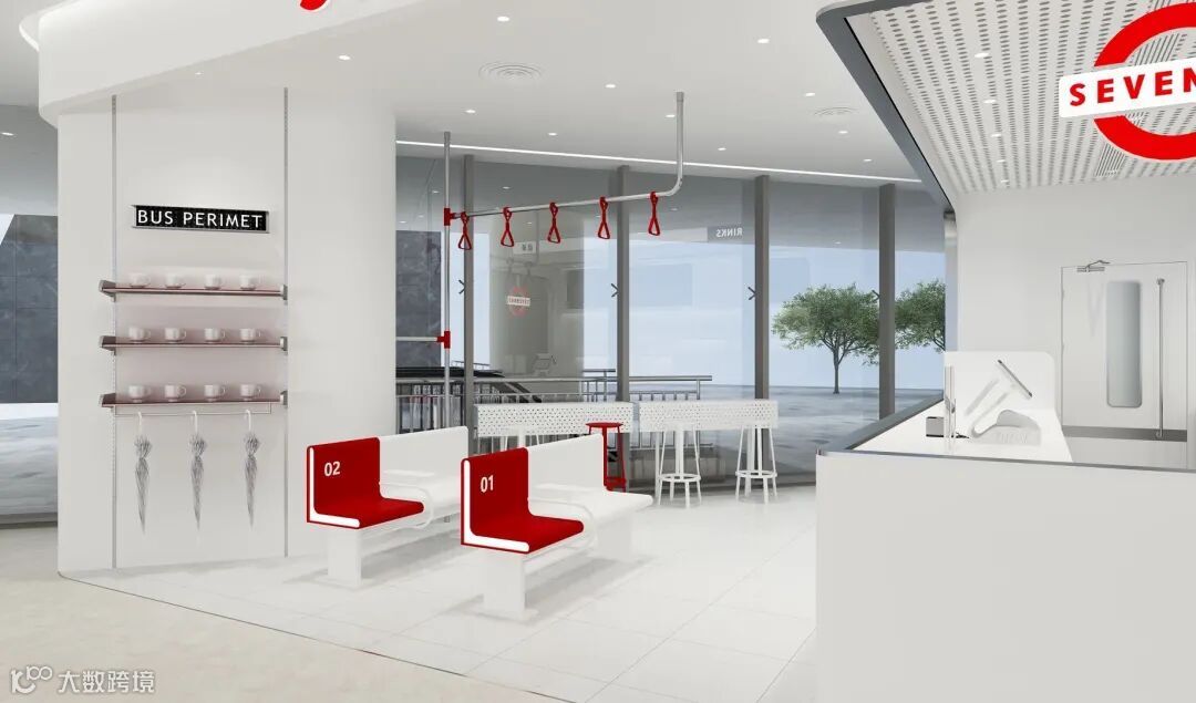 所有店铺沿用巴士主题设计,经典的红白配色,碰撞出高级的质感,让所有人都忍不住前来打卡。