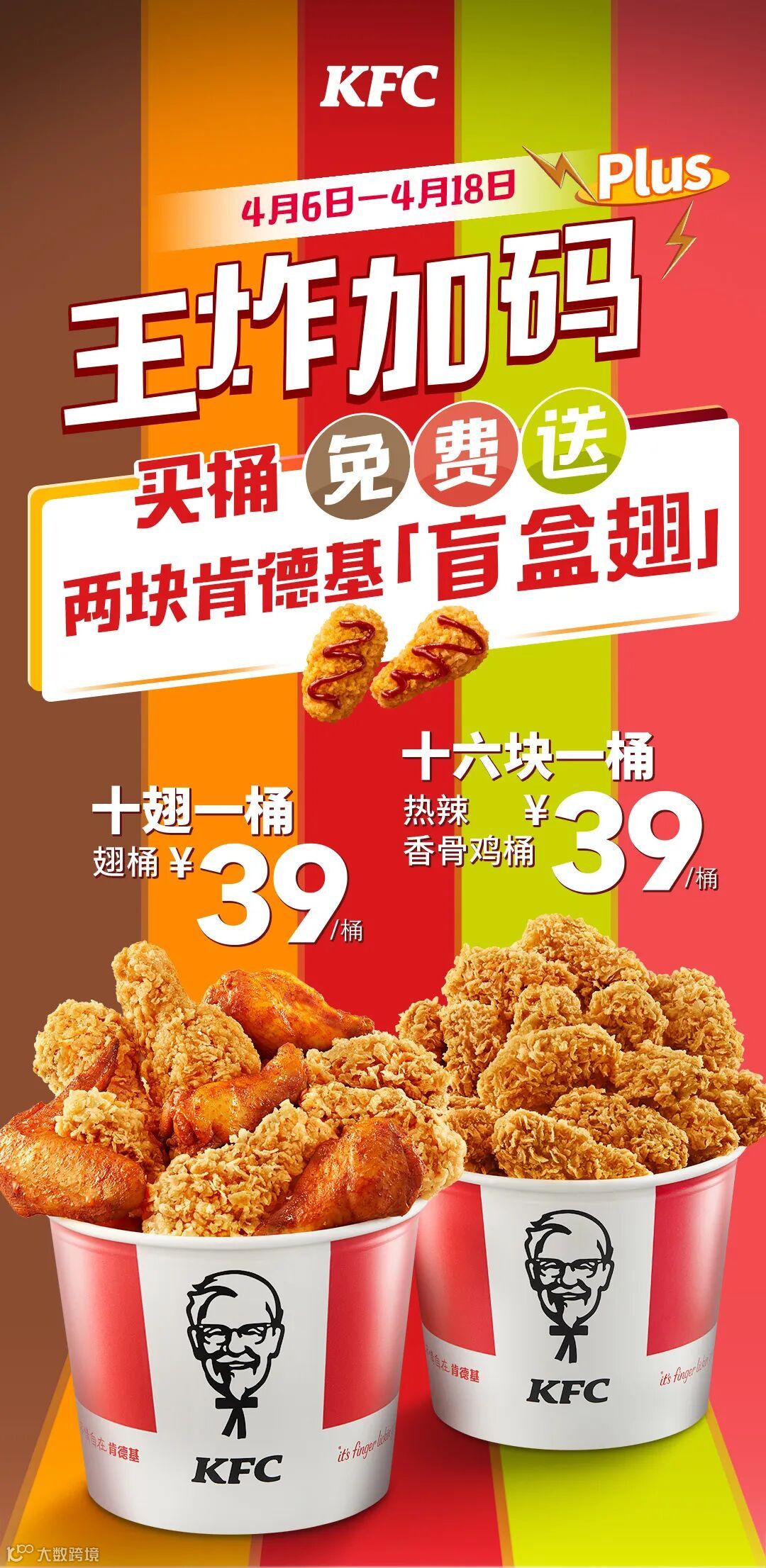 翅桶含6块香辣鸡翅、3块新奥尔良烤翅翅根和1块新奥尔良烤翅翅中;热辣香骨鸡桶含16块热辣香骨鸡;超级翅桶含10块香辣鸡翅和8块新奥尔良烤翅。翅桶、热辣香骨鸡桶、超级翅桶、翅桶墨西哥鸡肉卷套餐、热辣香骨鸡桶墨西哥鸡肉卷套餐自2021年3月22日-2021年4月18日上市,仅限9:30-23:00供应,广东省、福建省、海南省、广西壮族自治区等部分地区仅限10:30-23:00供应,具体以餐厅实际营业时间为准。墨西哥鸡肉卷自2021年3月22日起上市,全国售卖数量为675万份,售完即止。活动期间,如遇墨西哥鸡肉卷售罄,则翅桶墨西哥鸡肉卷套餐、热辣香骨鸡桶墨西哥鸡肉卷套餐中的墨西哥鸡肉卷将替换为新奥尔良烤鸡腿堡。2021年4月6日-2021年4月18日,购买翅桶、热辣香骨鸡桶、翅桶墨西哥鸡肉卷套餐、热辣香骨鸡桶墨西哥鸡肉卷套餐,可得肯德基「盲盒翅」2块。口味随机,以餐厅当日实际供应为准。肯德基「盲盒翅」隐藏口味包括:重庆style牛油火锅风味、柚子风味、经典番茄火锅风味、巧克力味、避风塘风味。仅限有此产品供应的肯德基餐厅,交通枢纽、旅游景区、西藏自治区的餐厅及精选餐厅等部分餐厅不供应本产品,具体情况以餐厅餐牌公示为准。产品及包装以实物为准。不适用于肯德基宅急送。不与其他优惠共享。