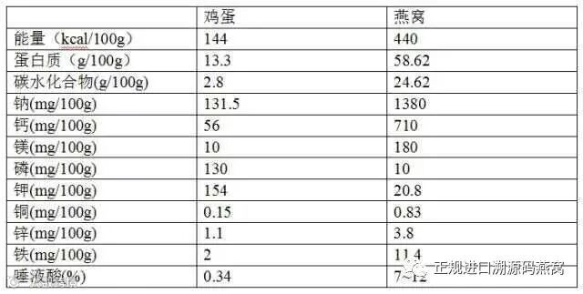 或许有人说多吃鸡蛋一样对孩子有营养,何必吃燕窝,看了下面一张表,你还会这样认为吗?单看蛋白质,能量,唾液酸和钙的补充,鸡蛋远不及燕窝,而且鸡蛋的营养被吸收根本无法与燕窝比。
