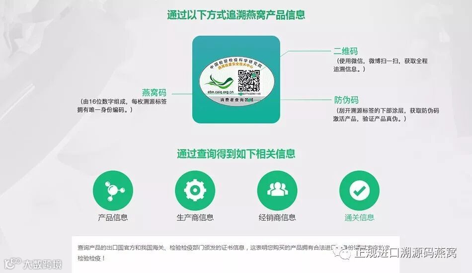 目前越来越多的获华注册的马来西亚和印尼燕窝加工企业全部自发申请使用该平台对其输华产品进行统一的溯源信息管理。该平台记录了所有的燕窝进口的所有溯源数据,覆盖了其原料、加工、进出口、经销各环节的信息。该平台成了国内燕窝市场监督管理的有力工具,让大家通过此平台最有效地知悉你手上的每一盏燕窝的“背景”,放心食用。