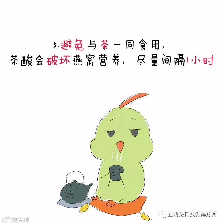 喜欢喝茶和咖啡的朋友,不要与燕窝同食,进食时间最好相隔1个小时间以上,避免茶酸或咖啡因破坏燕窝的营养。
