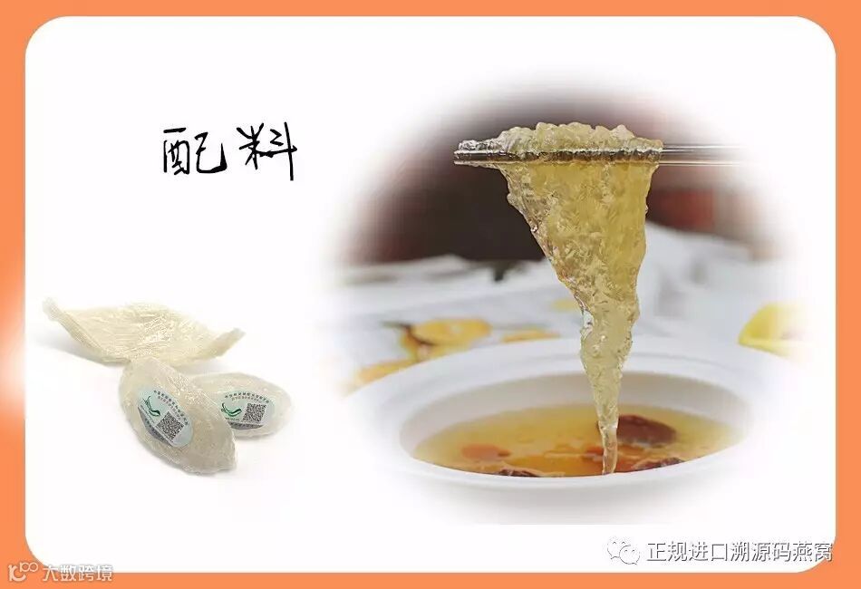 《随园食单》中说“此物,即指燕窝至清,不可以油腻杂之;此物至文,不可以武物串之”,“以柔配柔,以清配清”即一般食用燕窝,不宜放辛辣油腻之物。可配枸杞,红枣,冰糖。不同的配料,效果也会不一样,纯清水炖会膨胀,软绵滑口,先放糖融成水,再放枸杞,燕窝会漂浮白沫,用牛奶炖就会有一丝丝甜和脆。