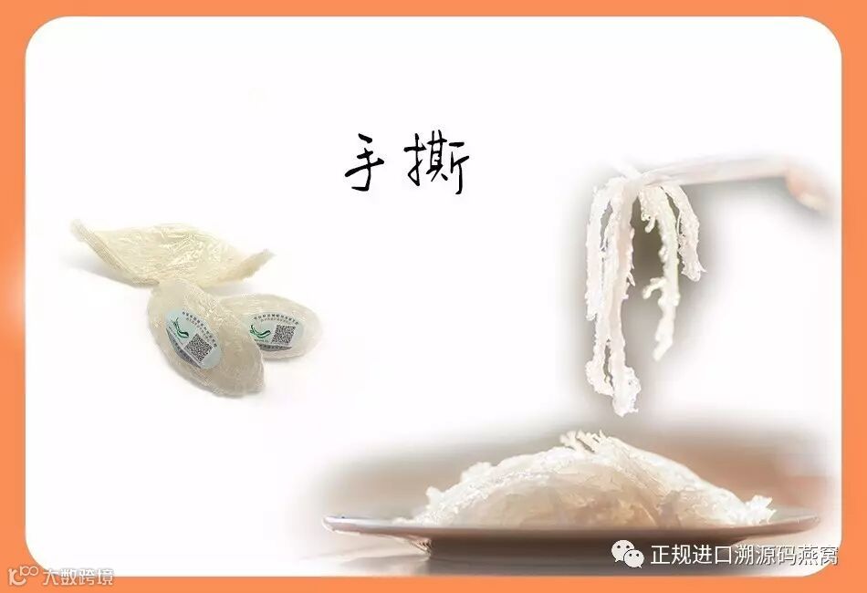 当然,燕窝浸泡后不撕开也是可以炖煮的,但是它是成块状,不便炖煮和饮食。但是燕窝属于水溶性蛋白质,将燕窝慢慢按照它的纹理撕成一条一条的,然后顺便处理一下里面的杂毛,再开始炖煮,炖煮时间会缩短,出来的燕窝软,嫩,并且美观。