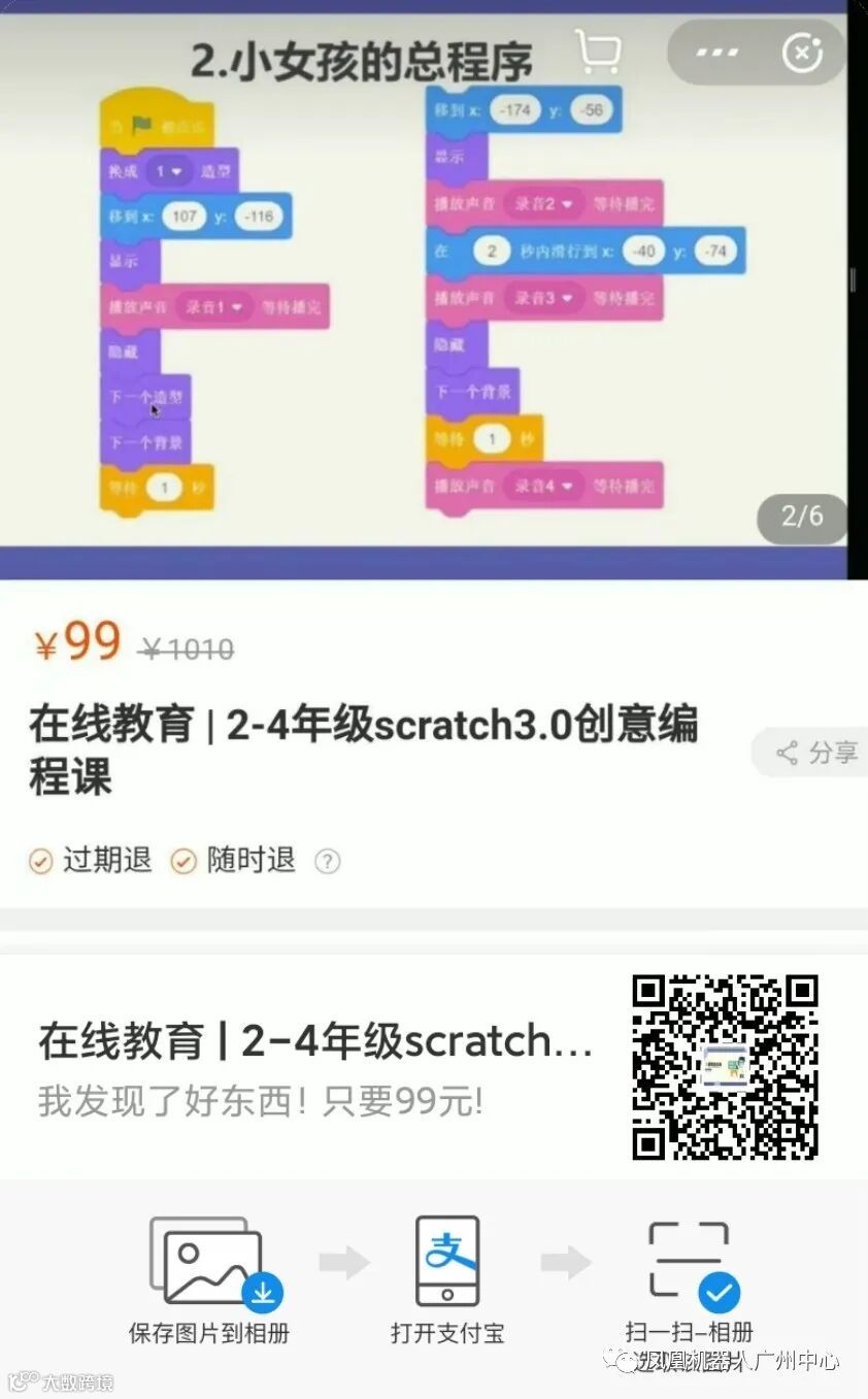 4次大班-1年级 Scratch.JR编程启蒙课+到店礼一份