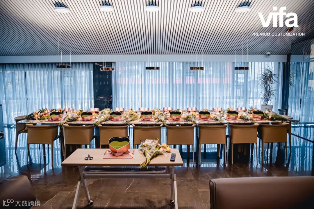 威法总部展厅内花香浮动,