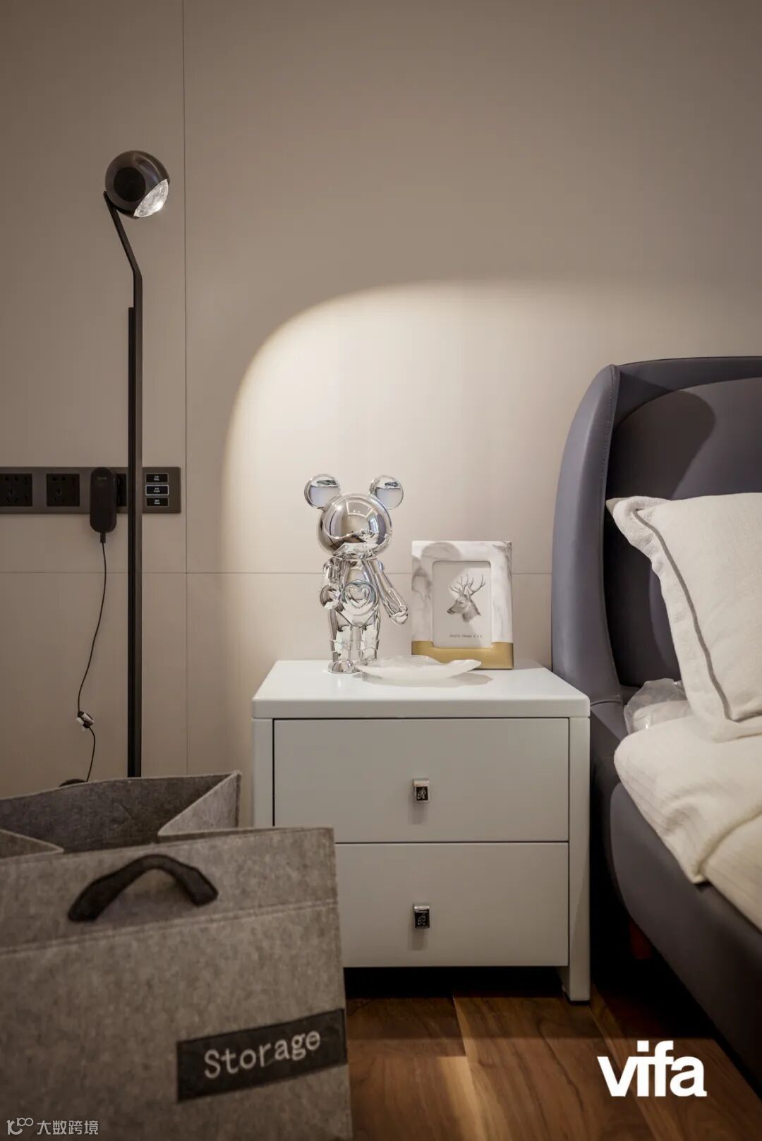 德国进口品牌Occhio灯光照射在床头柜上,