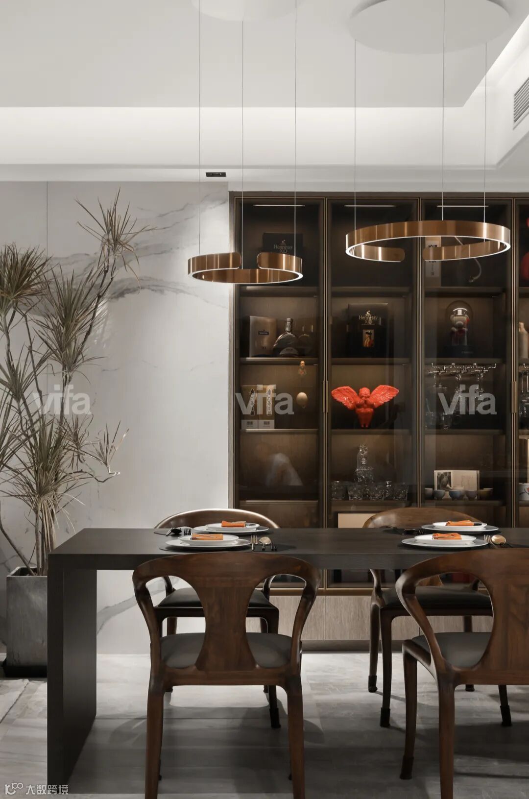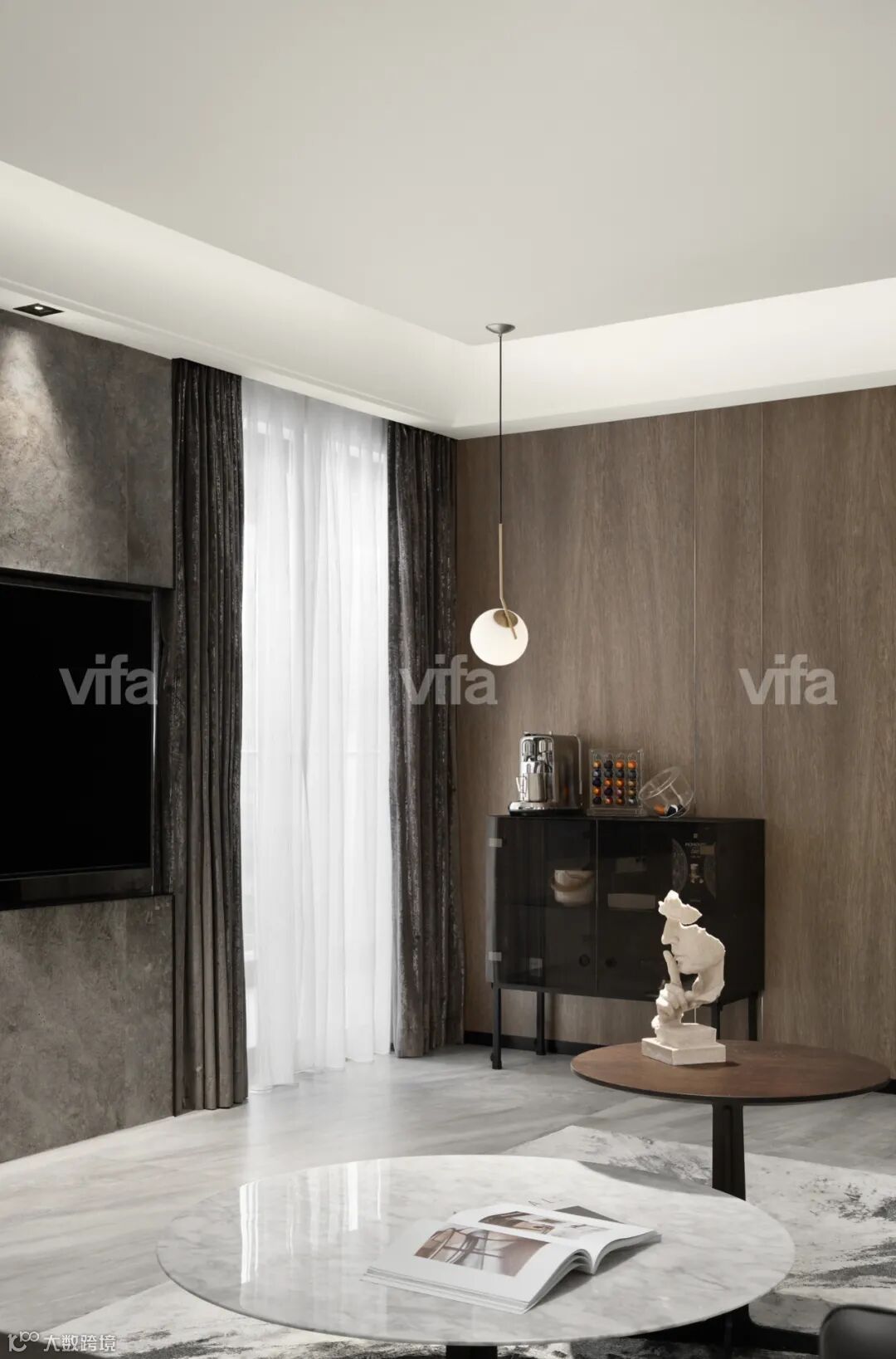 Occhio吊灯的质感为整个空间增添了几分感性与温度。