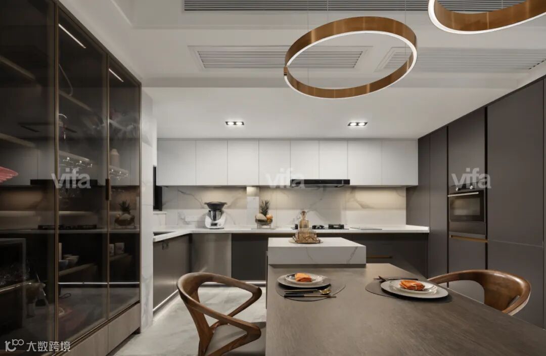 ▲ 雅致白吊柜+绒面灰橱柜