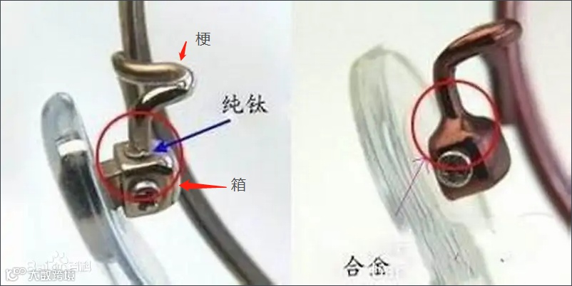 2、用磁石吸引。将镜架铰链尽量拧松,再用磁石去吸引,如镜腿在磁石的吸引下晃动,说明此镜架非纯钛材料,反之则说明该镜架可能是钛架。