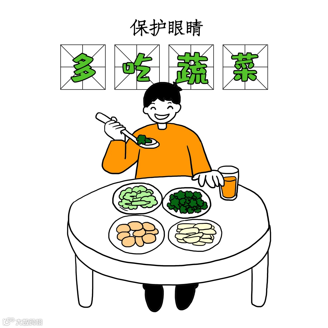 提供全面的营养:既要有富含维生素和微量元素的蔬菜水果,又要有一定量的糖、蛋白质、脂肪,如肉、蛋、奶等,因为眼睛的健康来源于全身的健康。