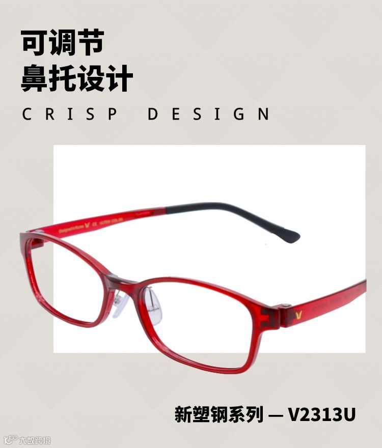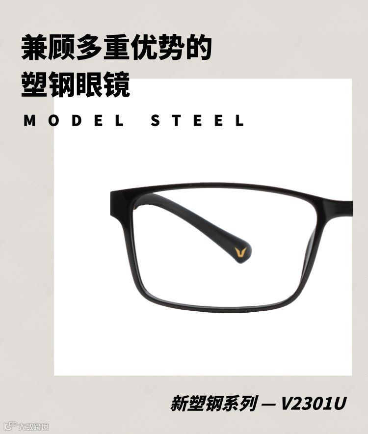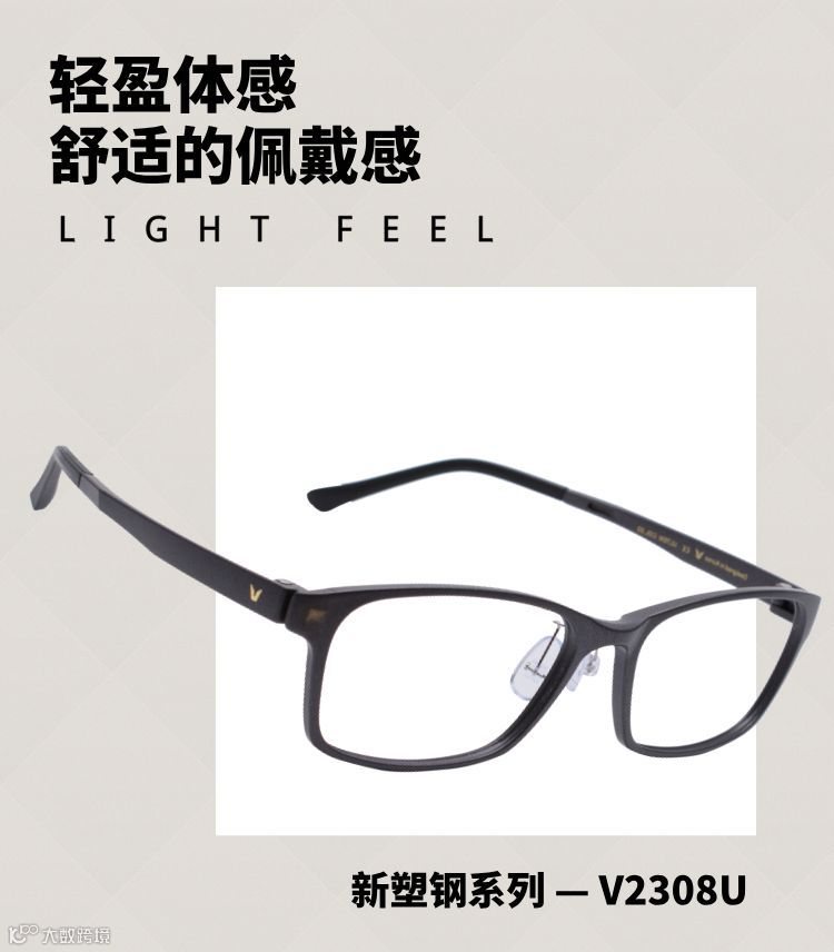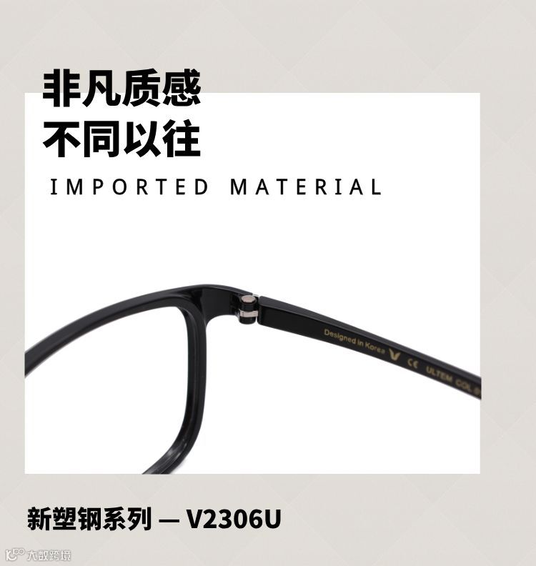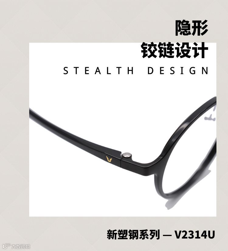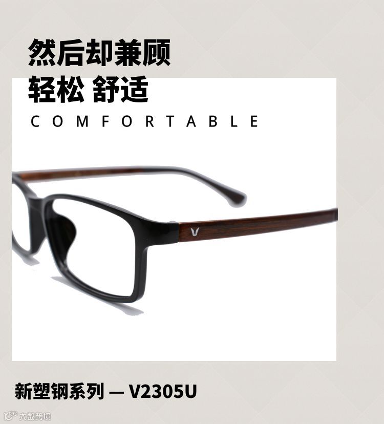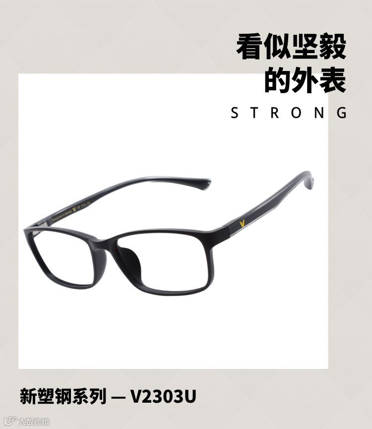 V牌眼镜新品采用塑钢材质,更轻薄、更舒适、更柔韧。