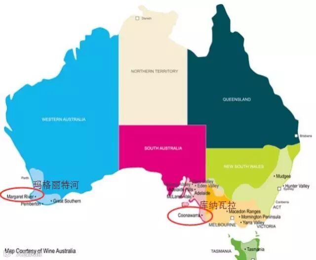 赤霞珠在澳洲依然非常成功,是澳洲种植面积仅次于西拉的葡萄品种,其经典产区是库纳瓦拉和玛格丽特。